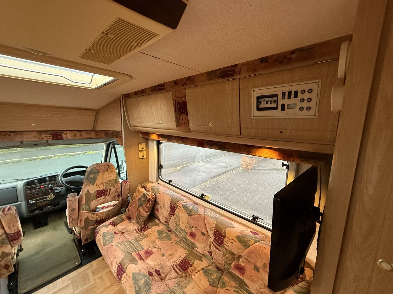 Autocruise Stargazer, 2 Berth, 6 Meter Motorhome with End Kitchen. This motorhome is built on the Fiat Ducato chassis with 2.8 litre engine it has been well maintained and has recent service and MOT. At the rear is the kitchen with Hob, Grill, Oven and 3 Way Fridge and next to this a good sized bathroom. The van is open and spacious with 2 large bench seats that can be used as 2 single beds or a large double. It comes with Habitation and Cab Air Con, CD Radio, Blown Air Heating, TV, Canopy Awning, Solar Panel, Gas Bottle, Mains Lead and 2 sets of keys. This is an ideal starter van with plenty of living space, available for viewing by appointment in Chorley. Call for more photos, videos and information.