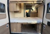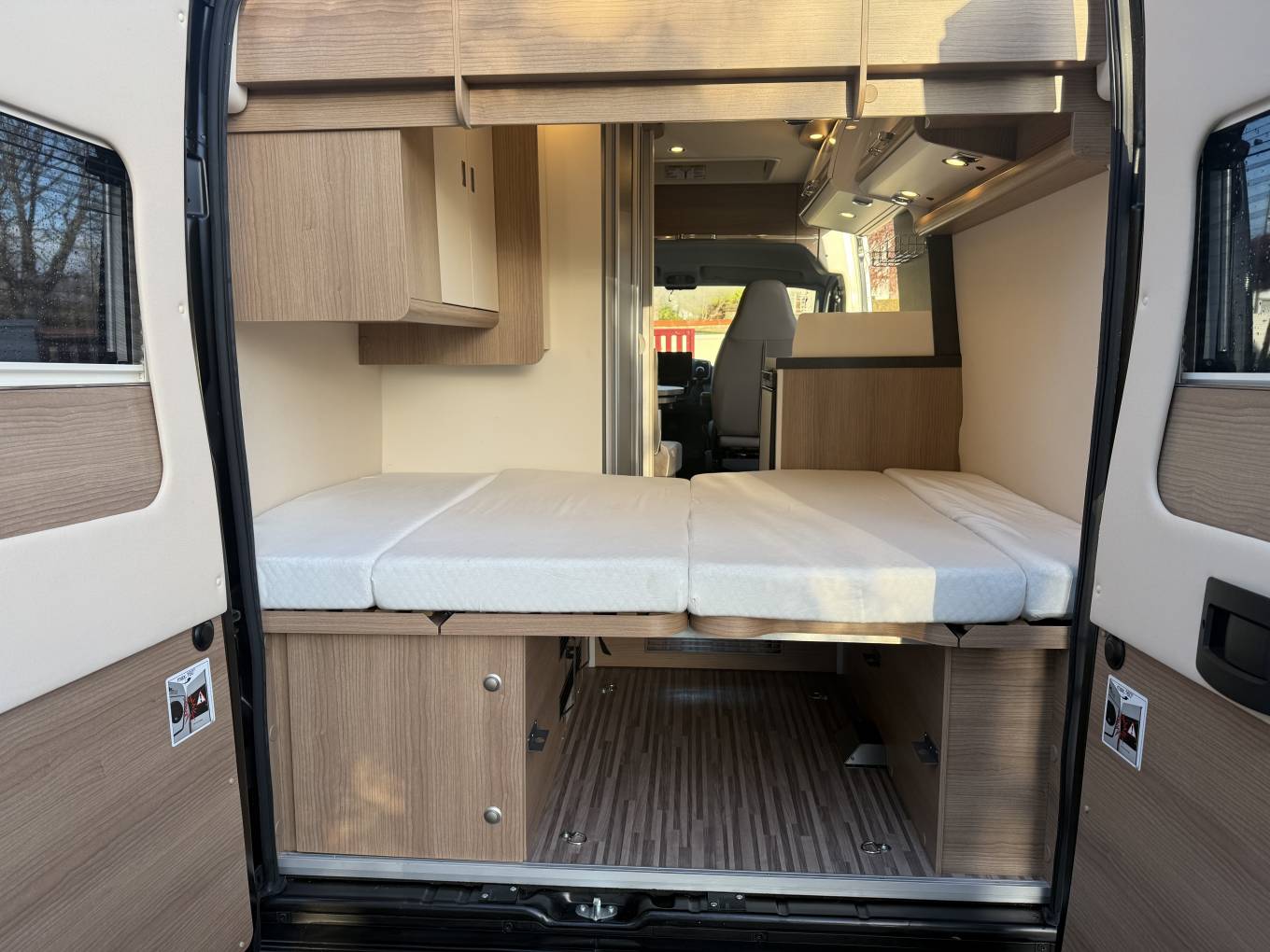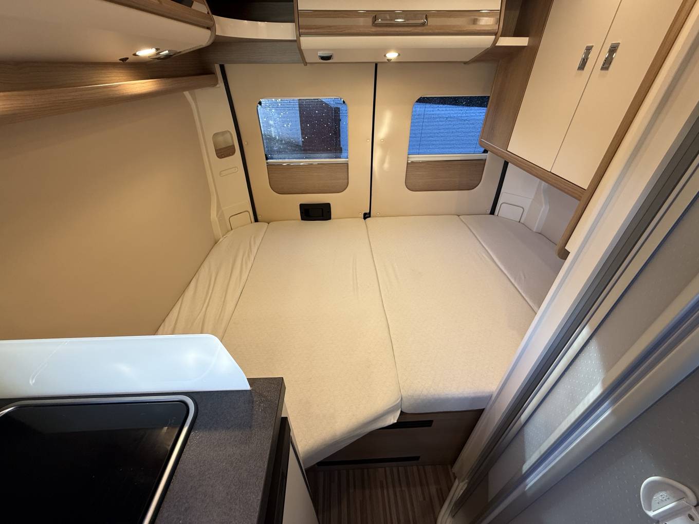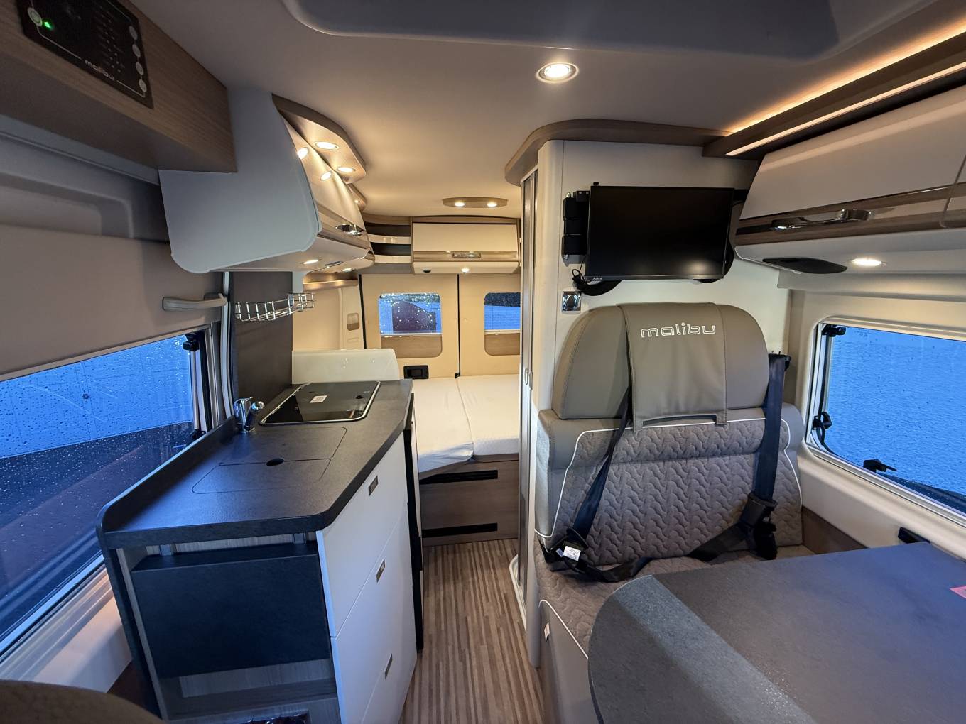 The Malibu Compact 540 DB has the sought after automatic transmission and has a length of 5.4 metres with a rear area that has a fixed double bed that can be converted to carry bikes, holiday and sporting equipment.