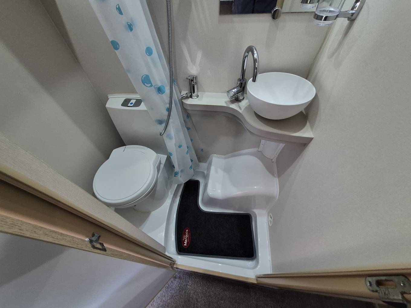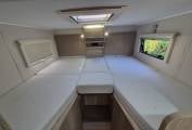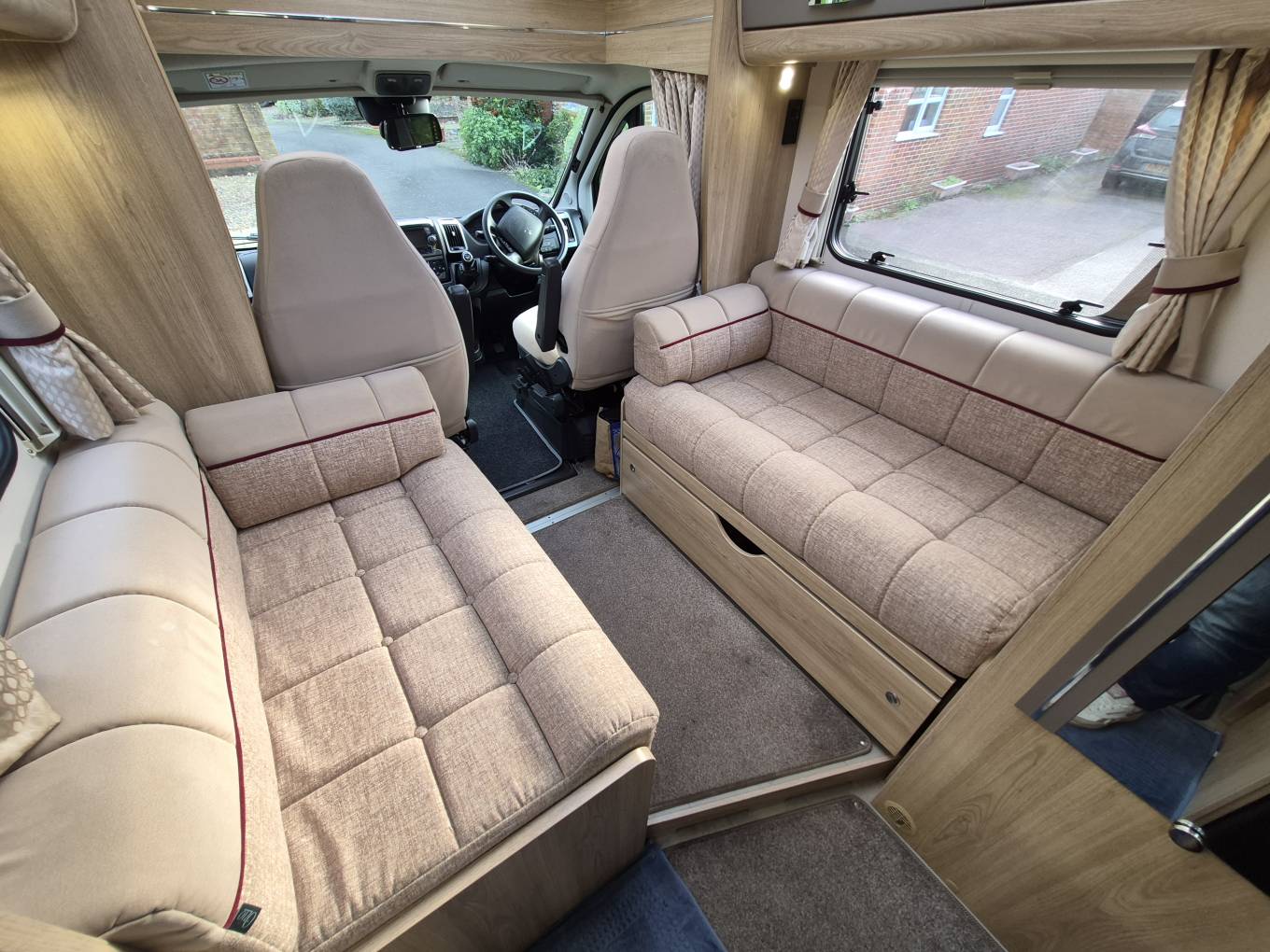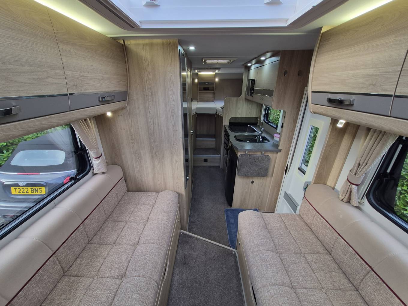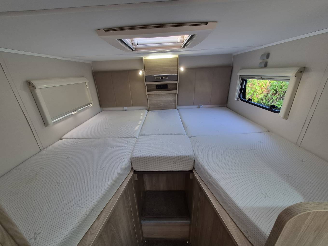 At the rear, the two single beds can be made into a larger double if required and there is plenty of storage below the beds in the large rear garage, that opens on both sides will allow for bikes to be safely stored, with anchor points, situated throughout and can also be accessed from the inside via the doors on the steps up to the bed.