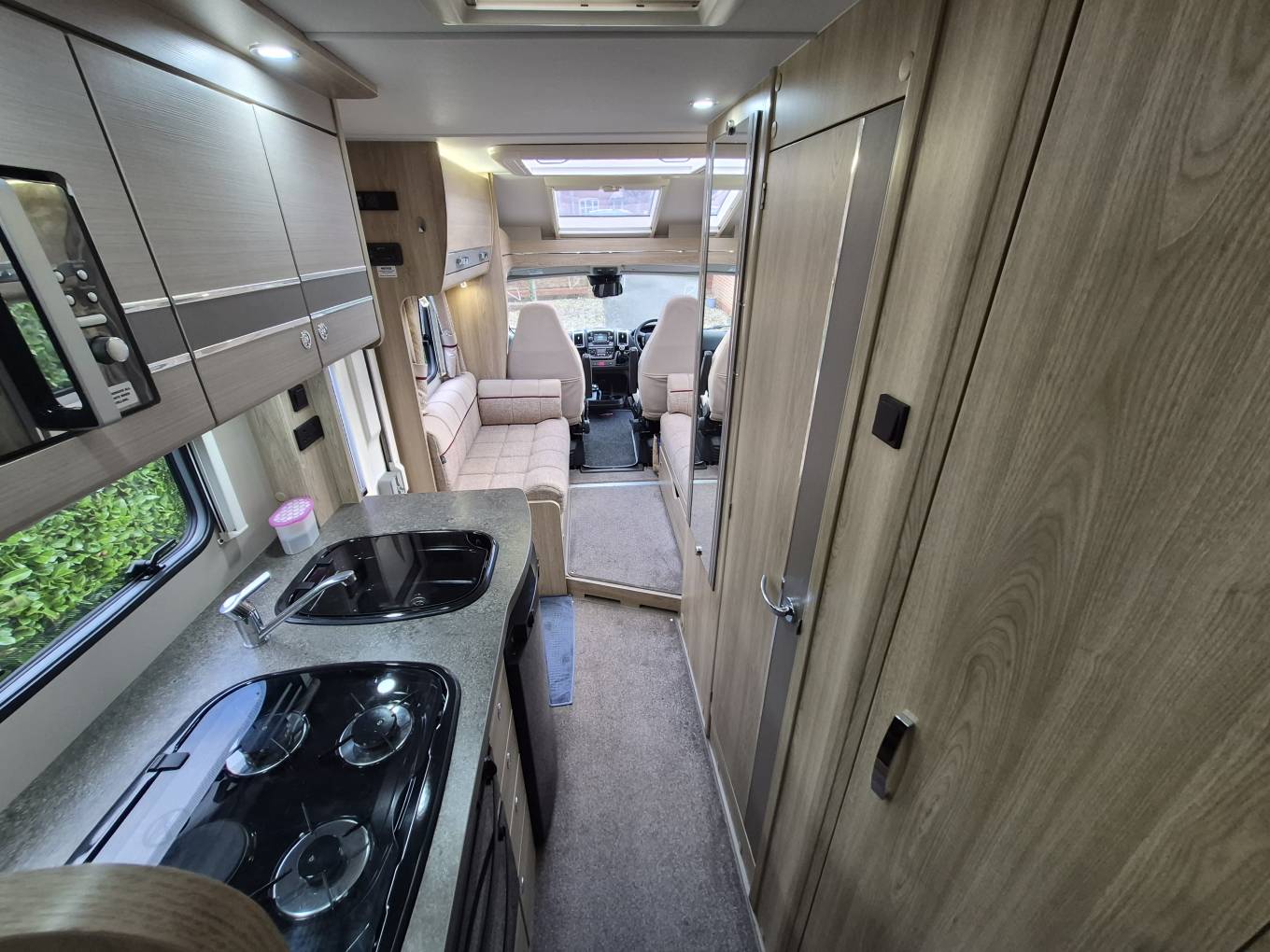 This distinctive motorhome, built on a Peugeot Boxer chassis, is approx. 7.34 metres long, has a 1997cc Euro 6 diesel engine, matched to a 6-speed manual transmission, which powers up the hills, sits on the motorway using cruise control and has covered only 14,593 miles. Another great benefit is anyone can drive this motorhome, as it has an overall GVW weight of 3,500kg and 500kg of payload. Every inch of it, is clean, tidy and in the best condition it could be. and additional features include, several USB and electric sockets, gas BBQ point, full length wind out canopy and towbar. For security, there is immobiliser, alarm and a tracker system.