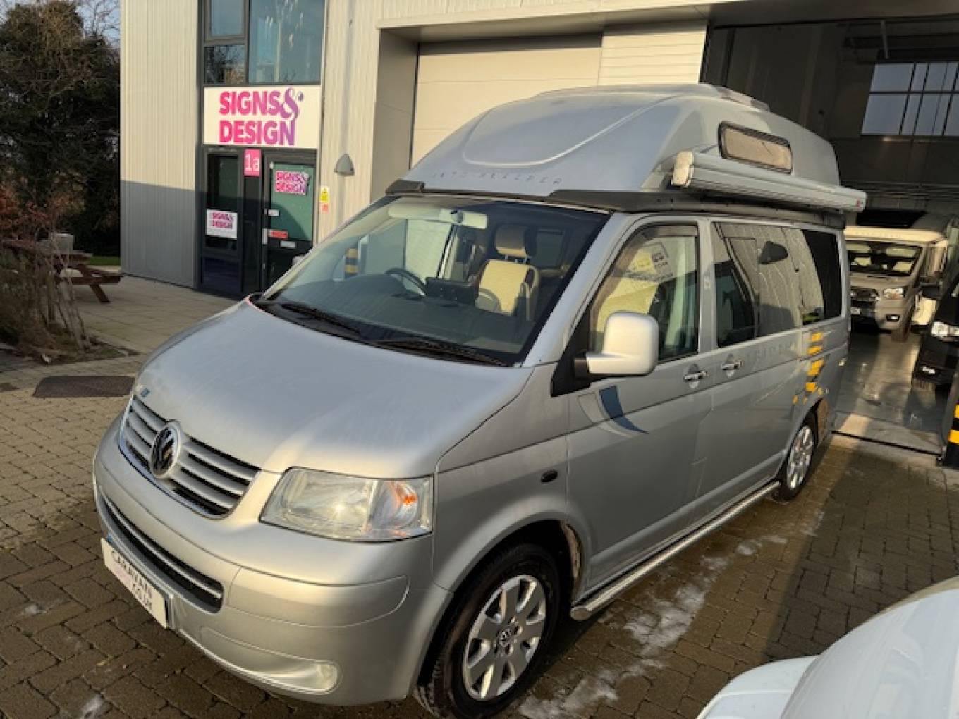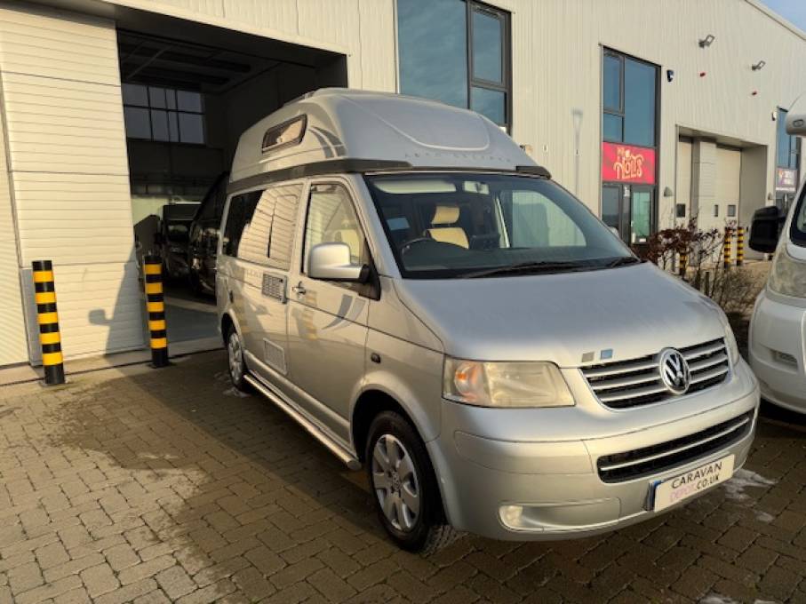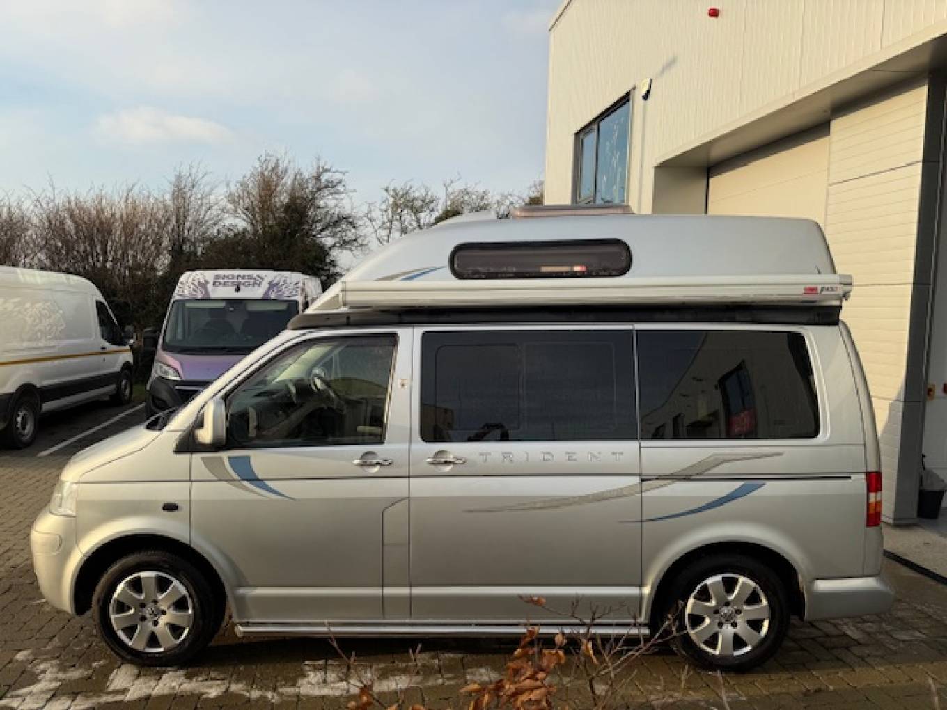 This Auto sleepers Trident in excellent condition for its year, Features of this vehicle include: Fiamma Awning, Swing out front seat table Plus all usual Trident features including: High quality Auto sleepers Furniture and Upholstery, Lots of storage areas, Stainless steel double burner/Grill combo, Large Stainless steel sink with separate drainer unit, Dometic 3 way energy selection fridge/freezer, Full 12v/240V electric system. Leisure battery with mains and alternator charging. Strip Lighting, 240V consumer unit and hook up lead. Sealed gas locker system with isolator valve. Webasto diesel powered heater, large opening roof Light/Vent, Swivel front captains seat with arm rests, 4 Inertia reel 3 Point seat belts, ..........High Spec VW Transporter features include: Powerful 130hp 2.5TDi engine and 6 speed gearbox, Air Conditioning, Cruise Control, VW Alloy Wheels, Colour coded wing mirrors and front bumpers, electric windows, Electric remote folding and heated Mirrors, Remote locking with dead locks and electronic immobilizer.