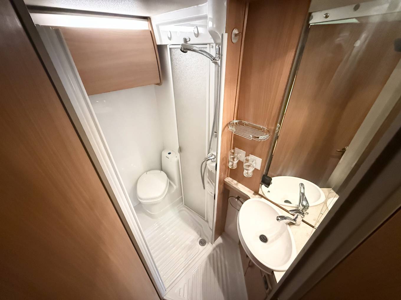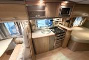 Passing through the lounge to the kitchen area you will find it fully equipped with a 3 way fridge with small freezer compartment, sink and mixer tap, full oven with separate grill compartment, 3 gas 1 electric hob, microwave and plenty of storage above and below. Moving down the vehicle to the rear you have the bathroom that has a separate shower with screen, cassette toilet, sink with mirror and storage.
