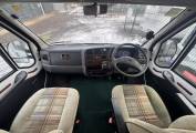 Available at our Depot in Burton on Trent is this coach-built, 2 berth, (3rd lap belt) rear washroom, Bessacarr E745, in good condition both inside and out, with 40000 miles. It’s an ideal tourer for 2 people with everything needed for an extended period away from home and off grid. It sits on a Fiat Ducato ALKO chassis, has the impressive Fiat 2800cc engine and with large windows throughout allows plenty of natural light to enter. Starting at the rear there is a large end washroom, that covers the full width of the motorhome. The enclosed shower cubicle sits next to the toilet, with a sink next to an impressive array of storage, a theme that runs throughout the motorhome. The well equipped kitchen area includes a cooker with 4 gas burners, oven and grill. You will also find a substantial fridge with freezer and sink plus plenty of cupboard space including a massive slide out cupboard with shelves next to the fridge. The lounge seats are long enough for most people to lie down on and can be made into a substantial double, again the large windows allow plenty of natural light. The upholstery, fixtures and fittings throughout are in very good condition, showing this motorhome has been well cared for by previous owners. Up front both seats swivels and there is a table for occasional use. It benefits from 4 good tyres - new in 2024, tow-bar, recent new Thetford fridge/freezer, full clip-on awning, wind-out awning, private number plate included.