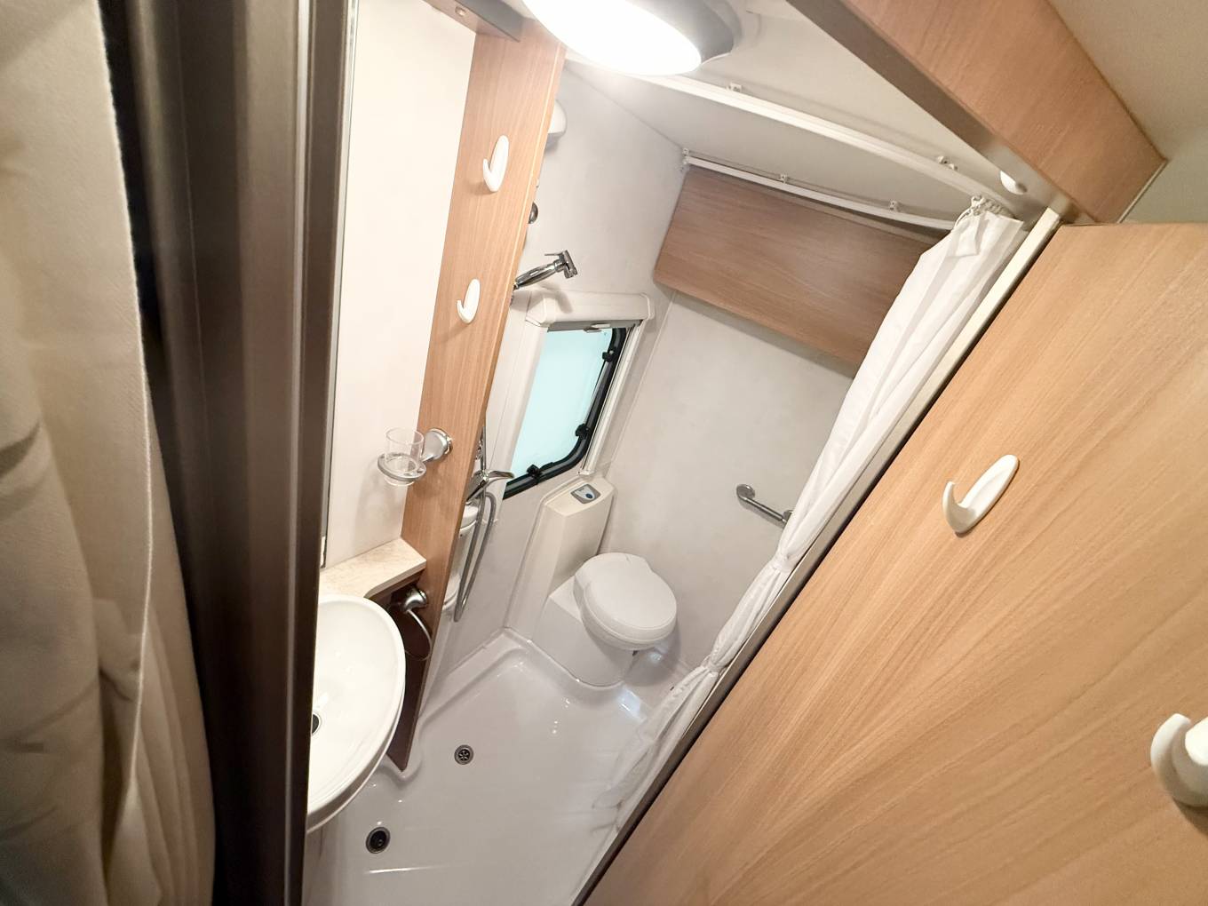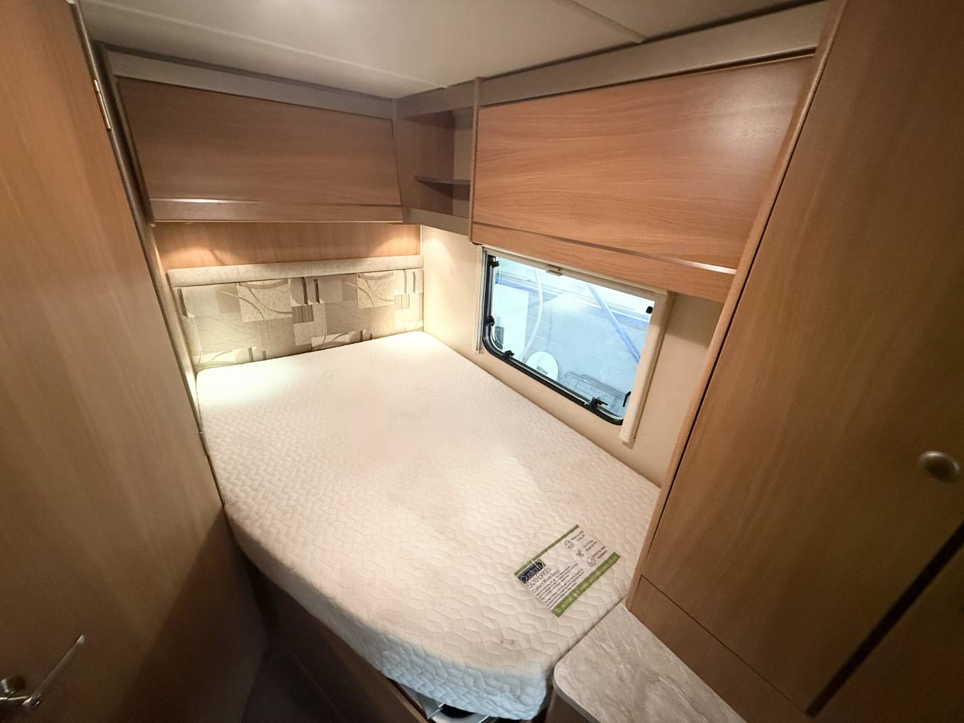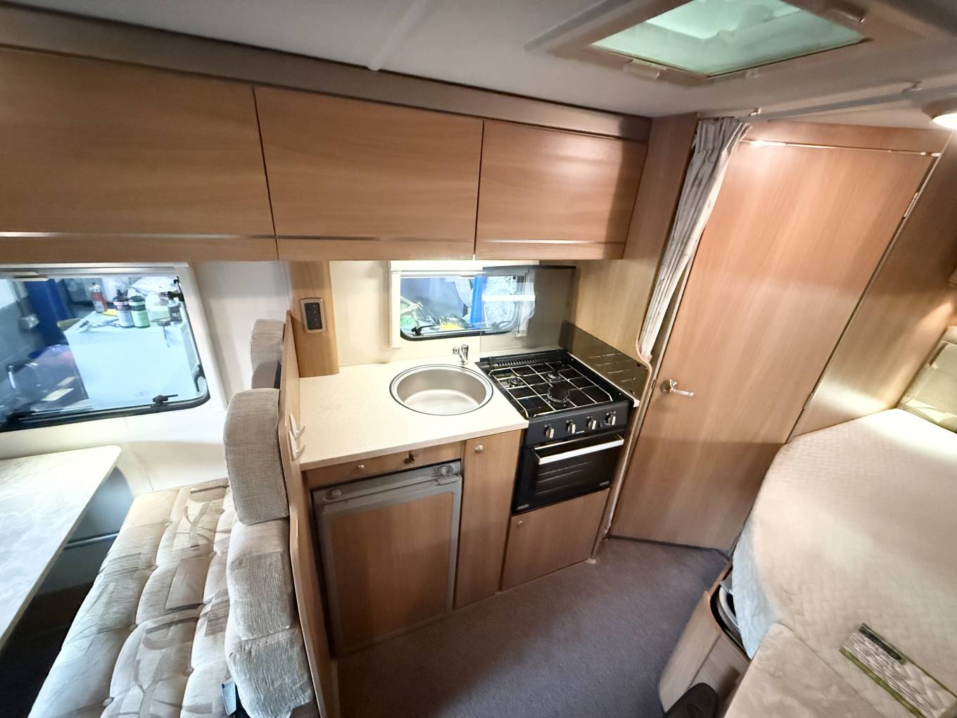 The 2011 Swift Escape 664 is a popular 4-berth, 4-belt motorhome built on a Fiat Ducato chassis, known for its rear fixed French bed, end washroom, and a versatile front lounge that converts into another double bed, featuring a well-equipped kitchenSleeping and seating up to four, it includes two rear travel seats in the dinette and a fixed French double bed with ample storage. The washroom features a WC, washbasin, storage, and a large shower with a curtain. The kitchen is equipped with a hob, 3-way fridge, oven, and sink, with a wardrobe opposite. The front half dinette seats six using swivel cab seats and converts into a second double bed.
