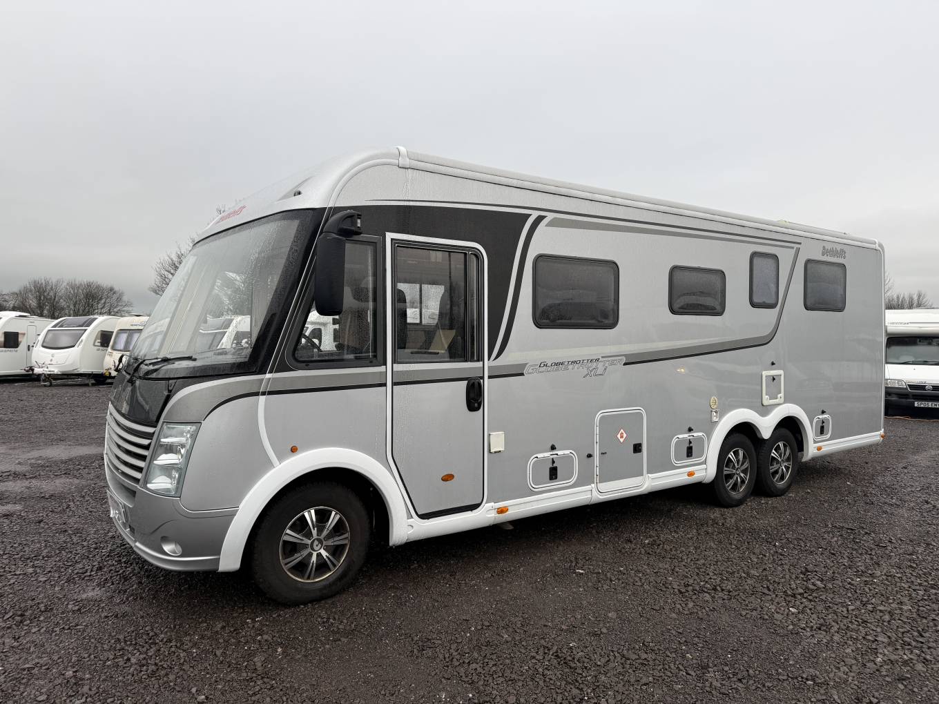 Motorhome Depot Glasgow is delighted to have for sale this 2012 DETHLEFFS GLOBETROTTER XLi 7850 EB motorhome. This Globetrotter XLi is a 4 berth with 4 travelling belts tag axle A-Class luxury motorhome in Titan Silver with the much sort after rear fixed bed over a full width rear garage offering great storage options.