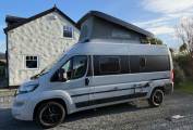 The Hymer Free 600 with Pop Top Roof, This vehicle is a 4-berth 5.99m long Van Conversion. Ideal for weekends The vehicle features a fixed rear transverse double bed, as well as a pop-top sleeping roof and onboard washroom. The swivel cab seats create a 4-person dinette making meals on the road feel just like home, and it’s genius storage solutions mean travelling small doesn’t mean you need to pack light.