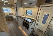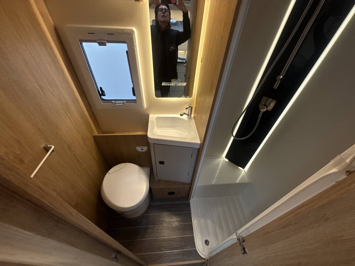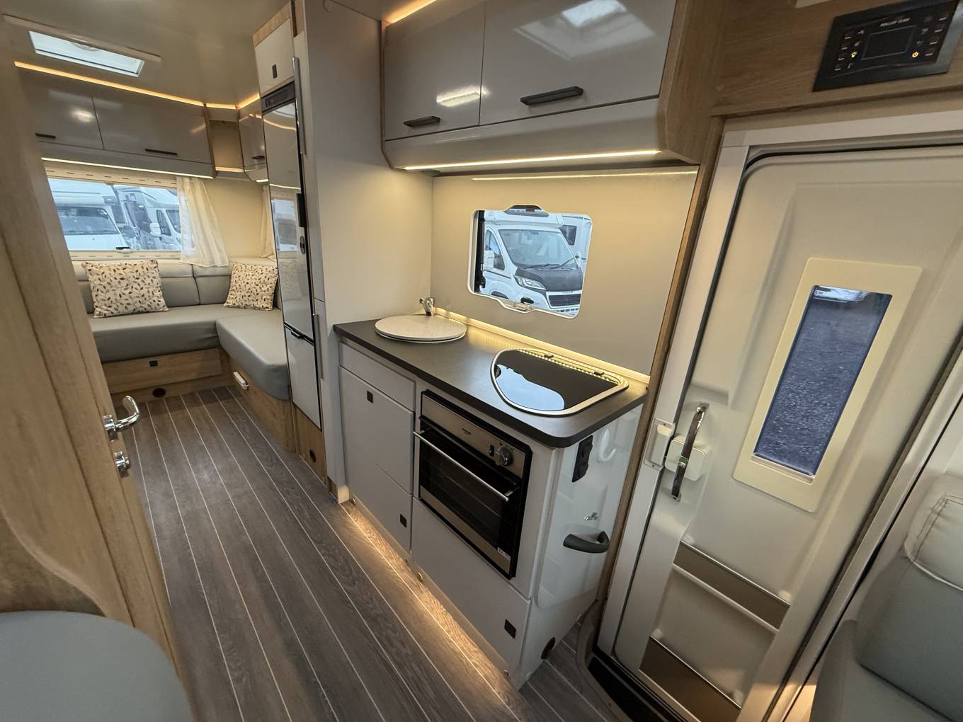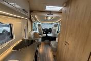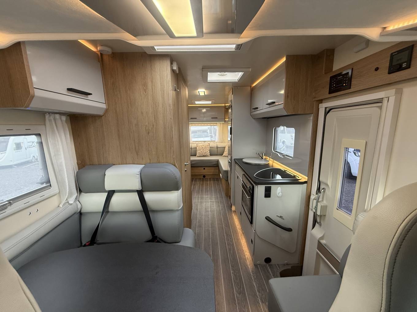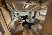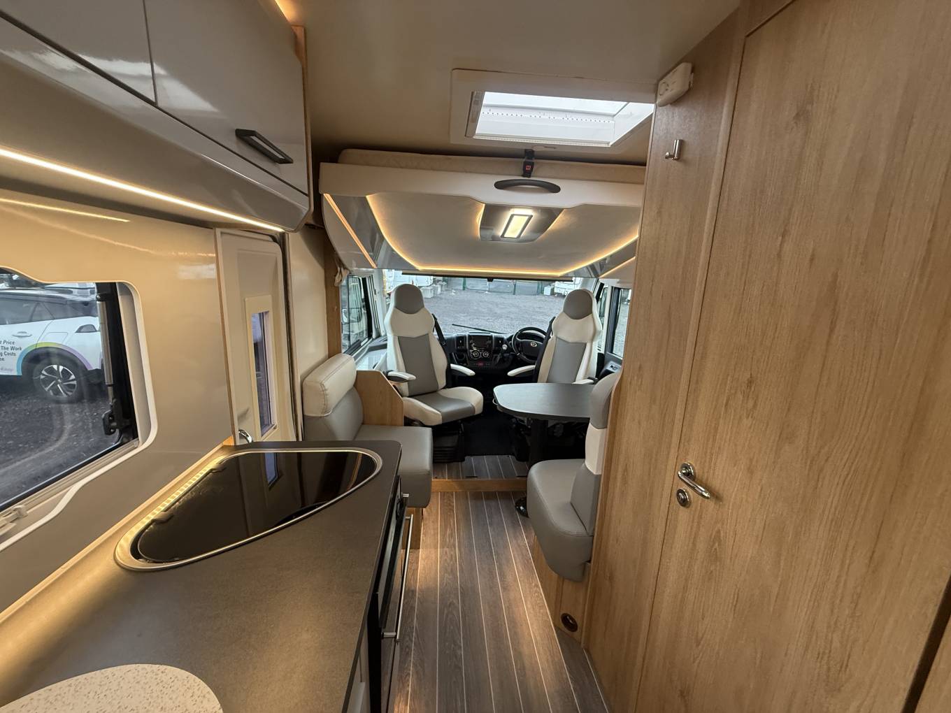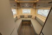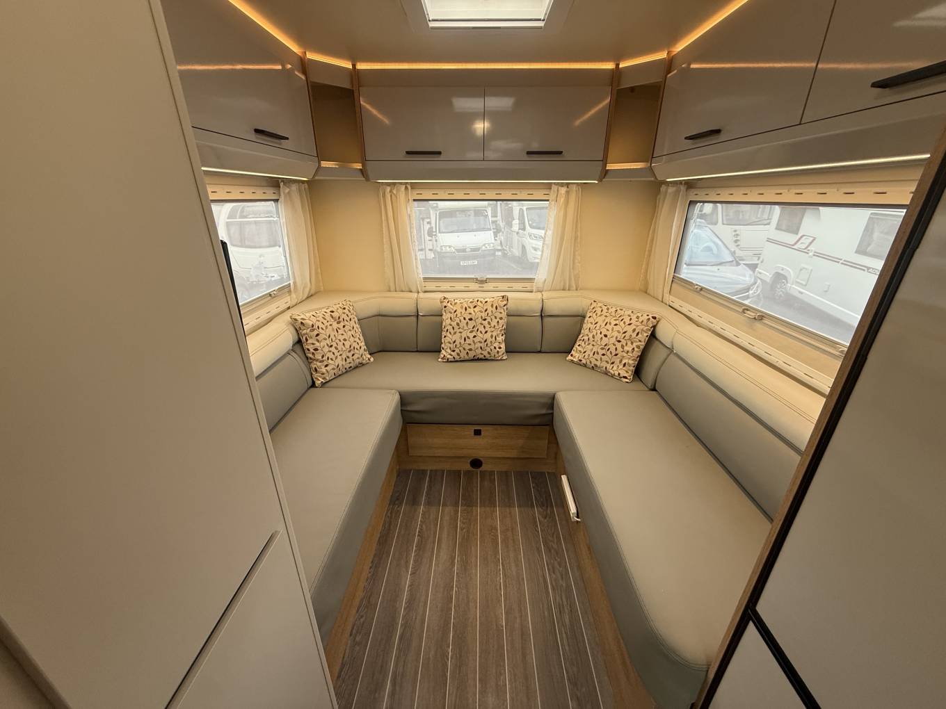 Situated below the bed you will find the two swivel Captain seats, a side-facing bench and a forward-facing dinette which provides the additional two 3-point travelling seatbelts, which comfortably seats 6 people to dine.