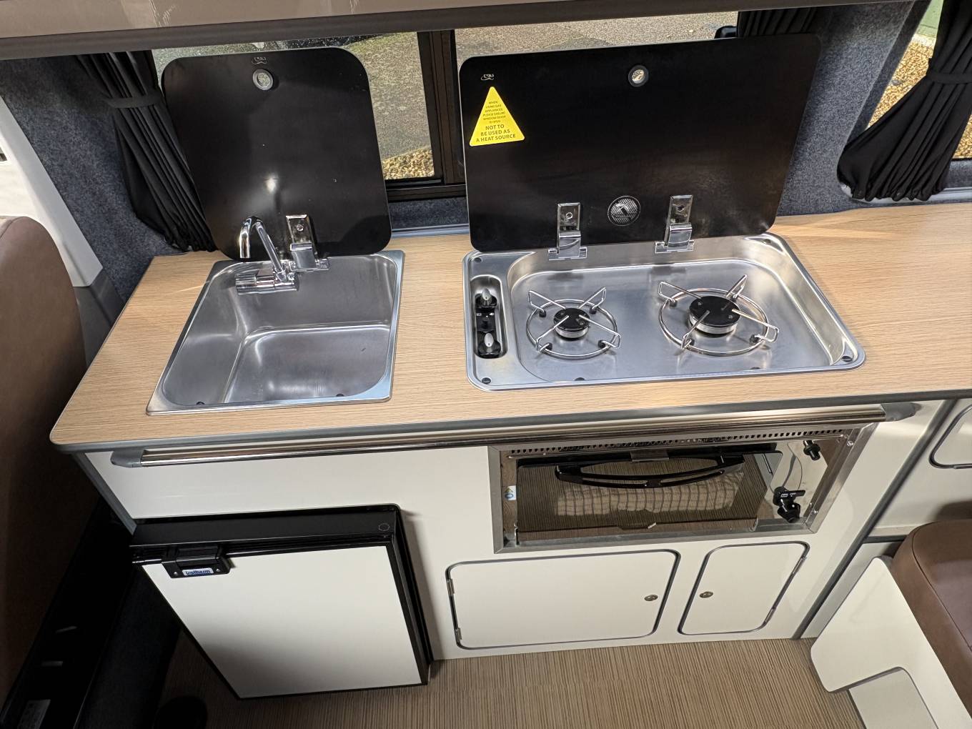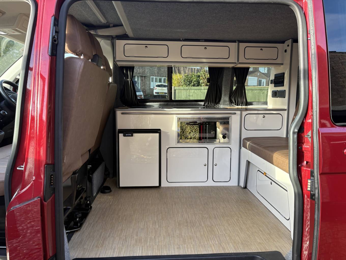 Motorhome Depot East Leicester are delighted to bring to market this eye catching Volkswagen T28 Highline. This 2022 model has a 1968cc litre Euro 6 engine making it Ulez compliant, 5 Belts and 4 Berths. At only 5.05m long, it would make a perfect daily vehicle as well as a campervan. This model has been carefully and tastefully converted by Cambridgeshire Campervans. The cab benefits from Air Conditioning, 3 front travel seats, 12v Plug socket, Media unit, Cruise control and cup holders.