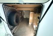extras include wind out canopy awning, solar panel, tow bar, refillable gas bottles, reversing camera and a large garage space.