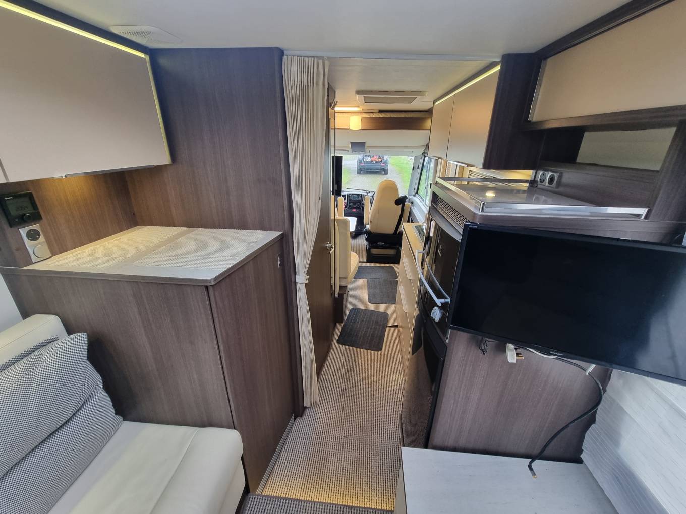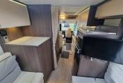 This superb A class Burstner has been built with typical German quality. It comprises a rear L shaped lounge with seating that will easily convert to a large double bed and give the Motorhome a real feeling of space. There is plenty of storage space, and a large bathroom with movable shower wall to create a separate cubicle. The kitchen is well equipped with hob, sink and fridge/freezer and oven. The front seats swivel round to create a great social/dining area with the table and further leather seating. Above the cab is a large pull down double bed.