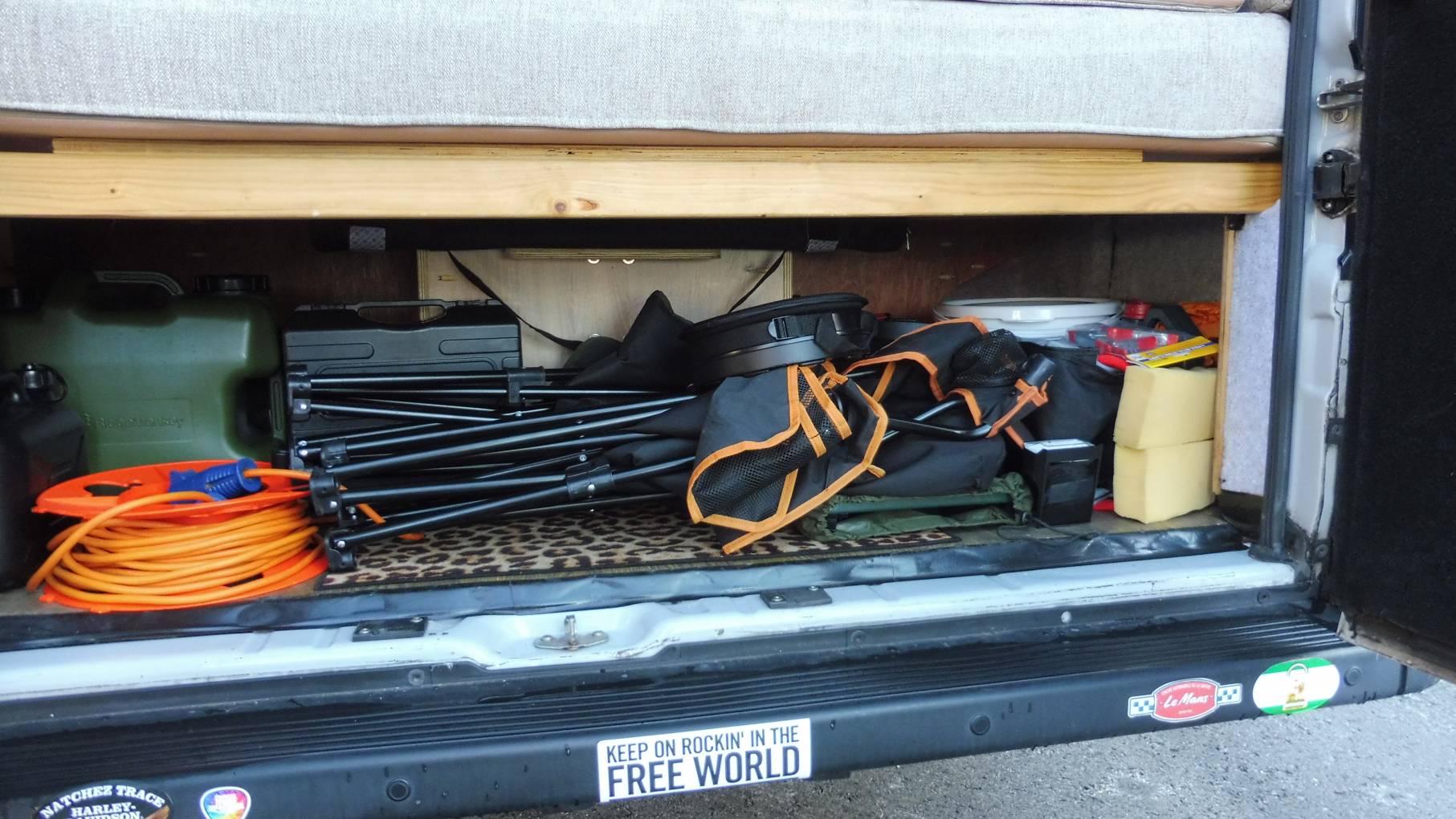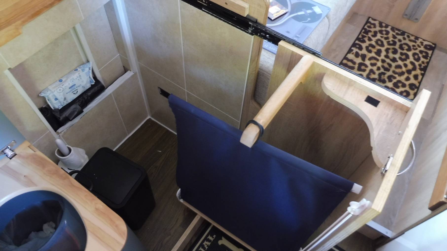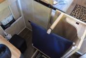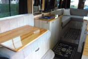 A compositng toilet is hidden away in the offside cabinet and a shower area can be set up if required.