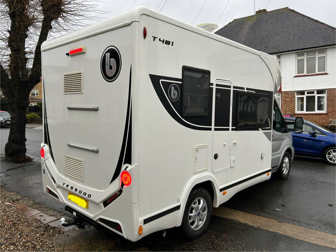 On the road, the Tessoro T481 is easy and confidence‑inspiring to drive, benefiting from sat nav, Bluetooth connectivity, and the added reassurance of an alarm and tracker system. Externally, the motorhome is fitted with a wind‑out awning for relaxing outdoor space and a bespoke fitted tow bar, adding extra versatility for those who wish to tow or fit additional carriers.