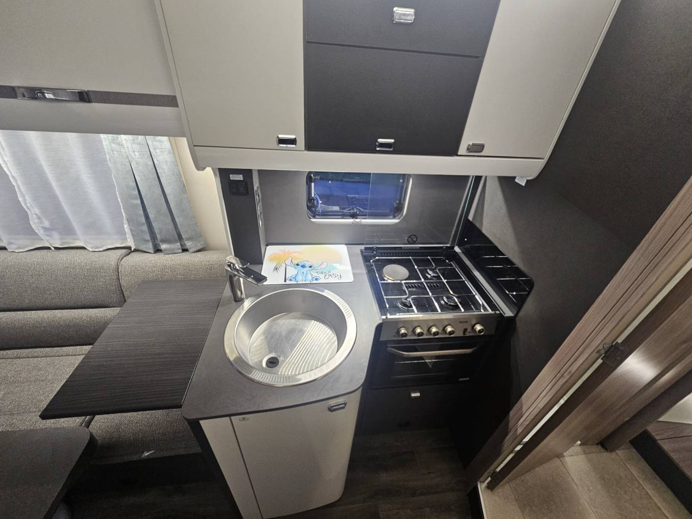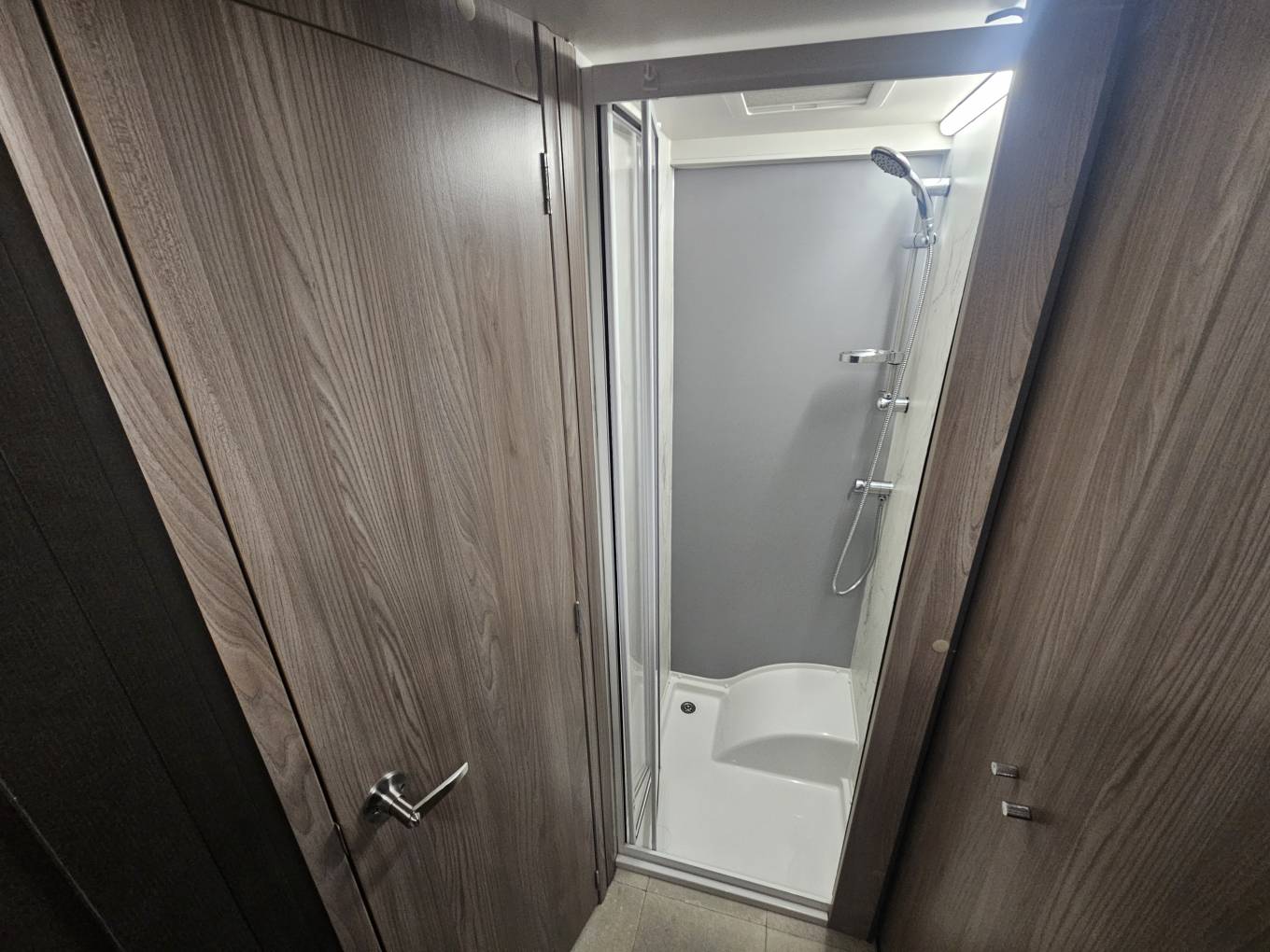 Externally, There’s a large heated rear garage with lighting, USB, 230V power sockets, and twin access doors, outside there is also a canopy, BBQ point, alloy wheels with TPMS, reversing camera, solar panel, and a bike rack. The van is also equipped with a built in WiFi.