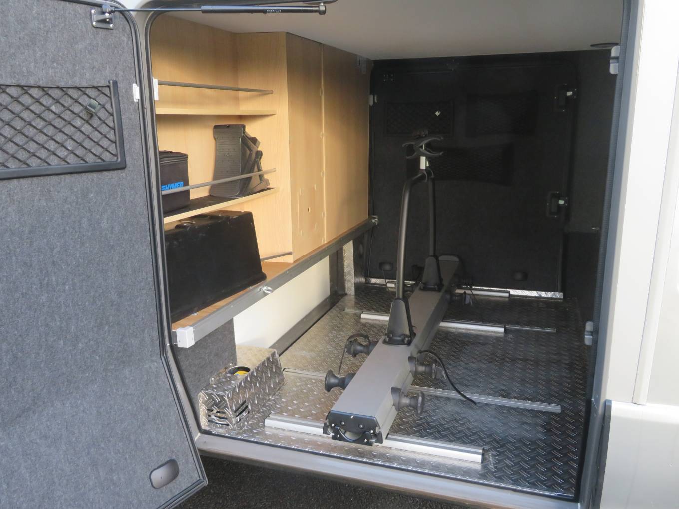 A large garage beneath the bed offers external access and extensive storage, including a bulk gas system with two gas bottles.