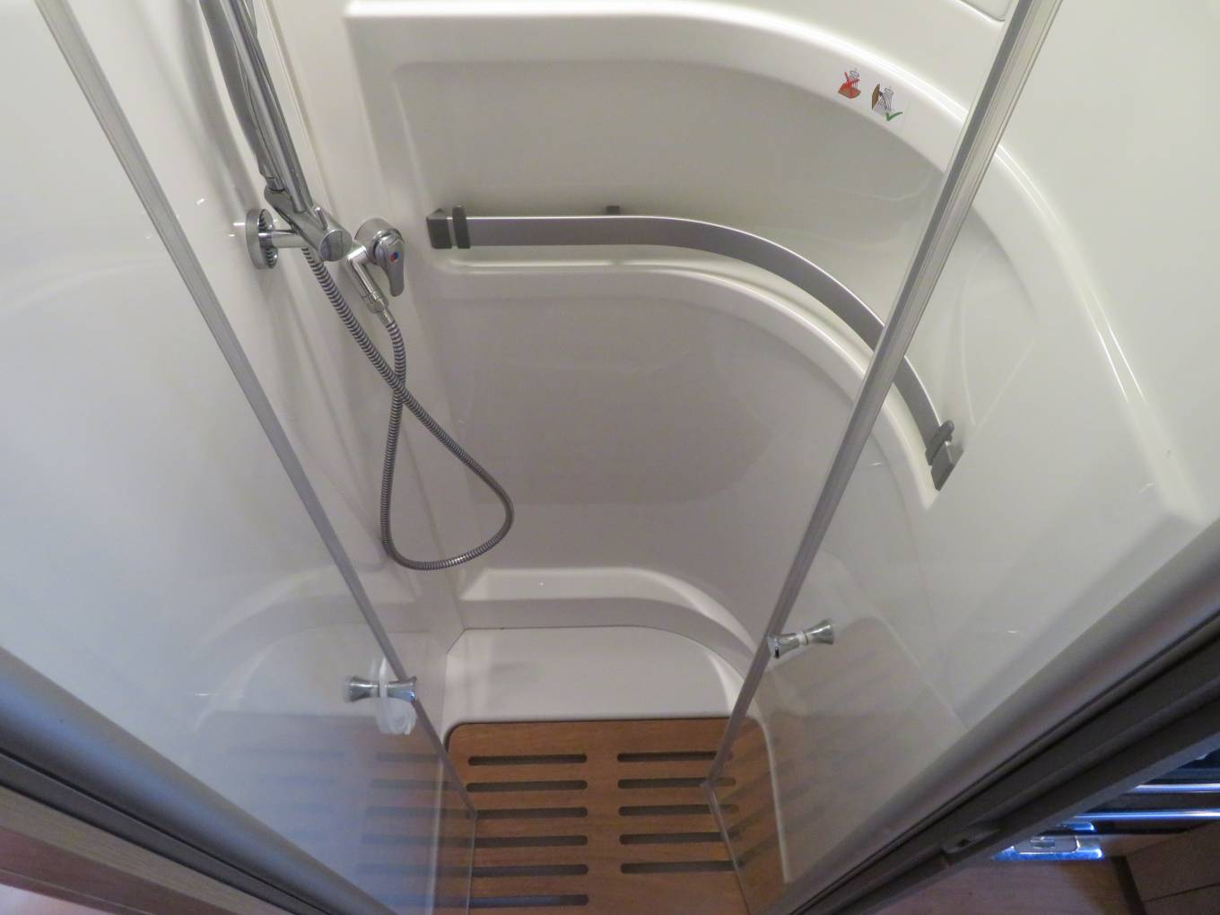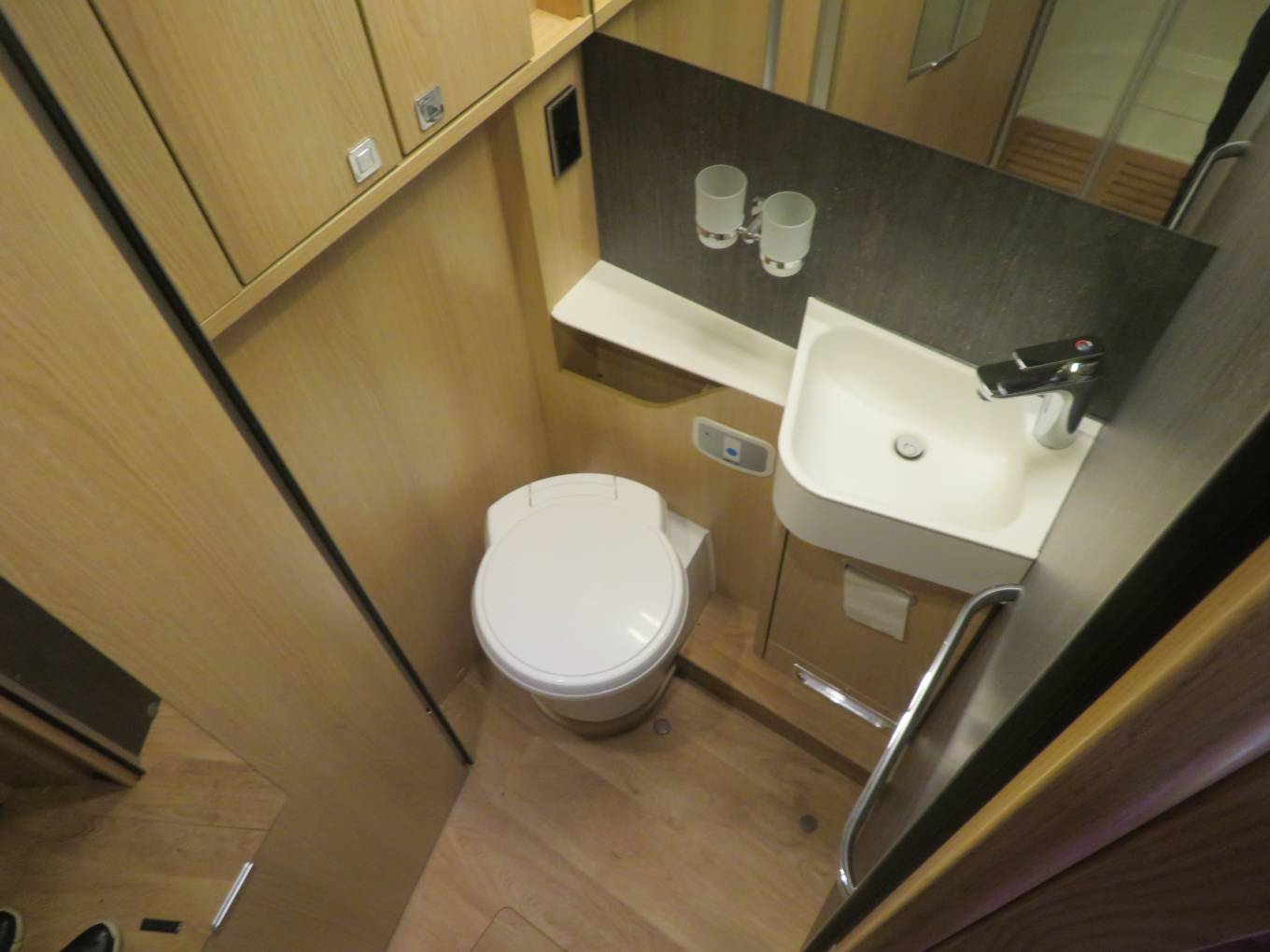 Refresh after a day of adventure in the washroom featuring a spacious separate shower cubicle , a sink with a mixer tap, mirrors, a vanity unit and a cassette toilet , .
