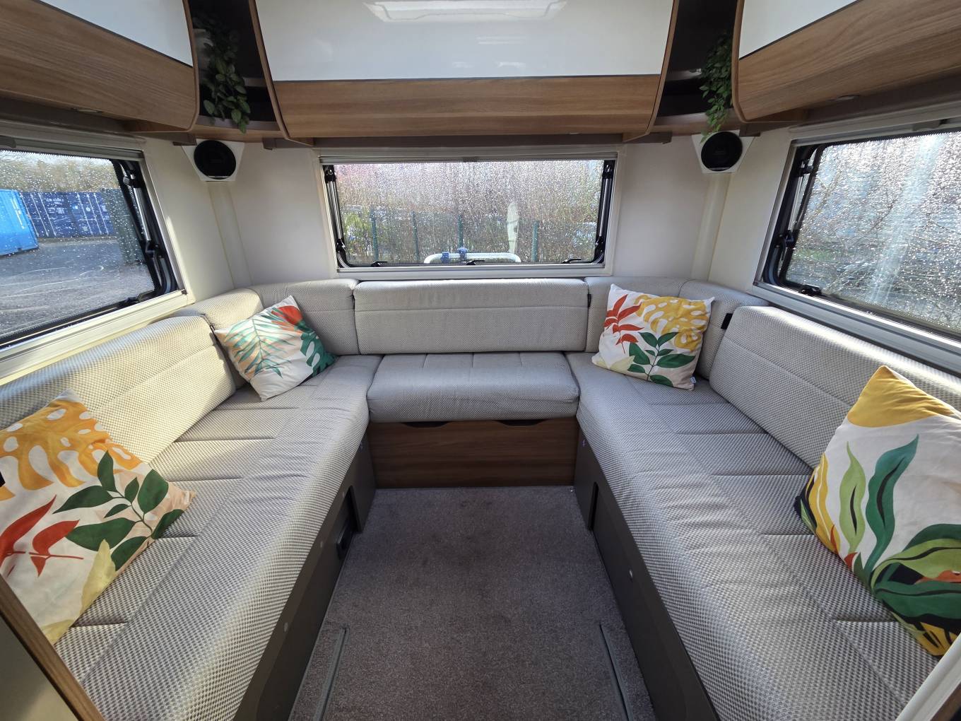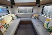 The rear U-shaped lounge is a real feature of this motorhome being very spacious and luxurious and is perfect for relaxing or enjoying quality family time, with plenty of storage in the wall units and under the bench seats.