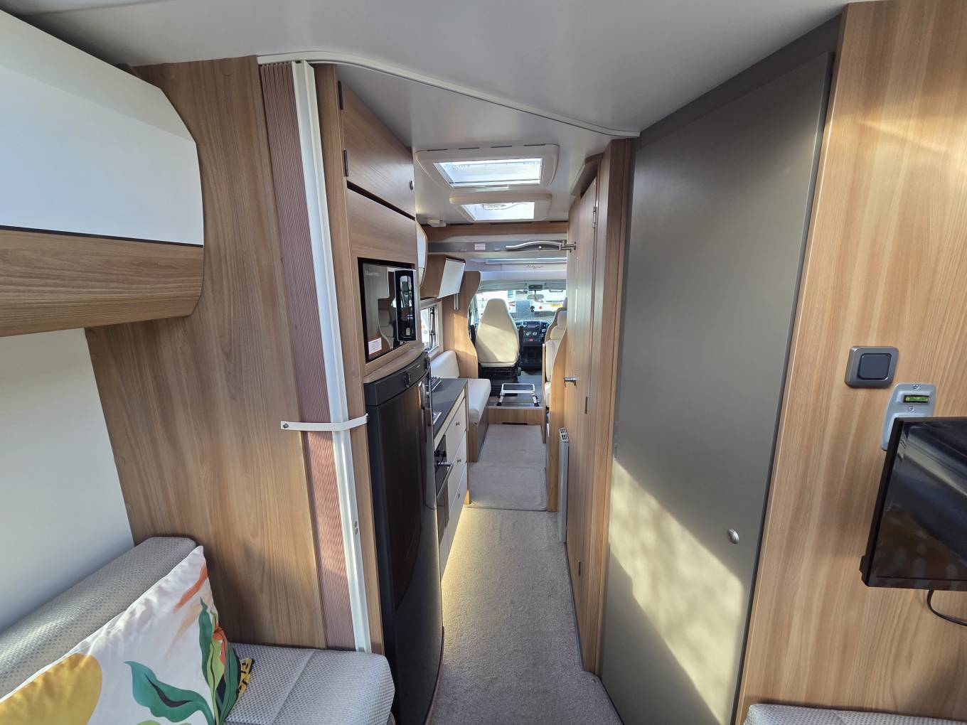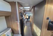 Externally, this motorhome is packed with features, including a bike rack, wind-out canopy, access to additional storage, an external BBQ point, a three-pin plug, and a TV aerial point. Comfort is assured with the Alde heating system, while the solar panel keeps the leisure batteries charged. A Tracker system ensures your motorhome stays secure. Other features include Cab air conditioning, cruise control, reverse camera, steering wheel controls, Bluetooth, rear-view mirror, and integrated blinds in the cab.