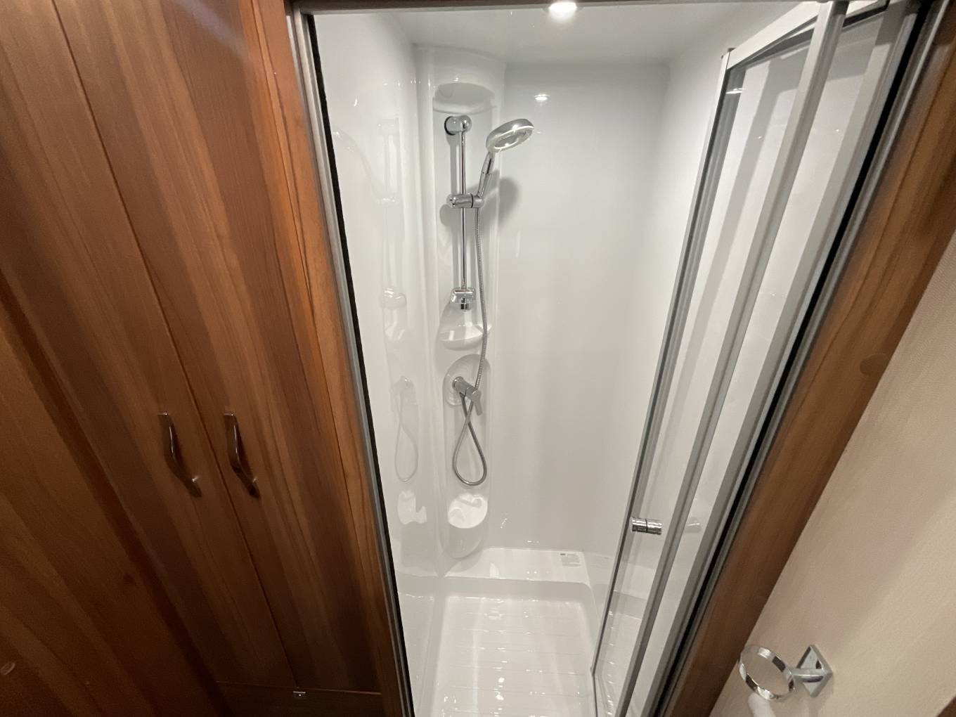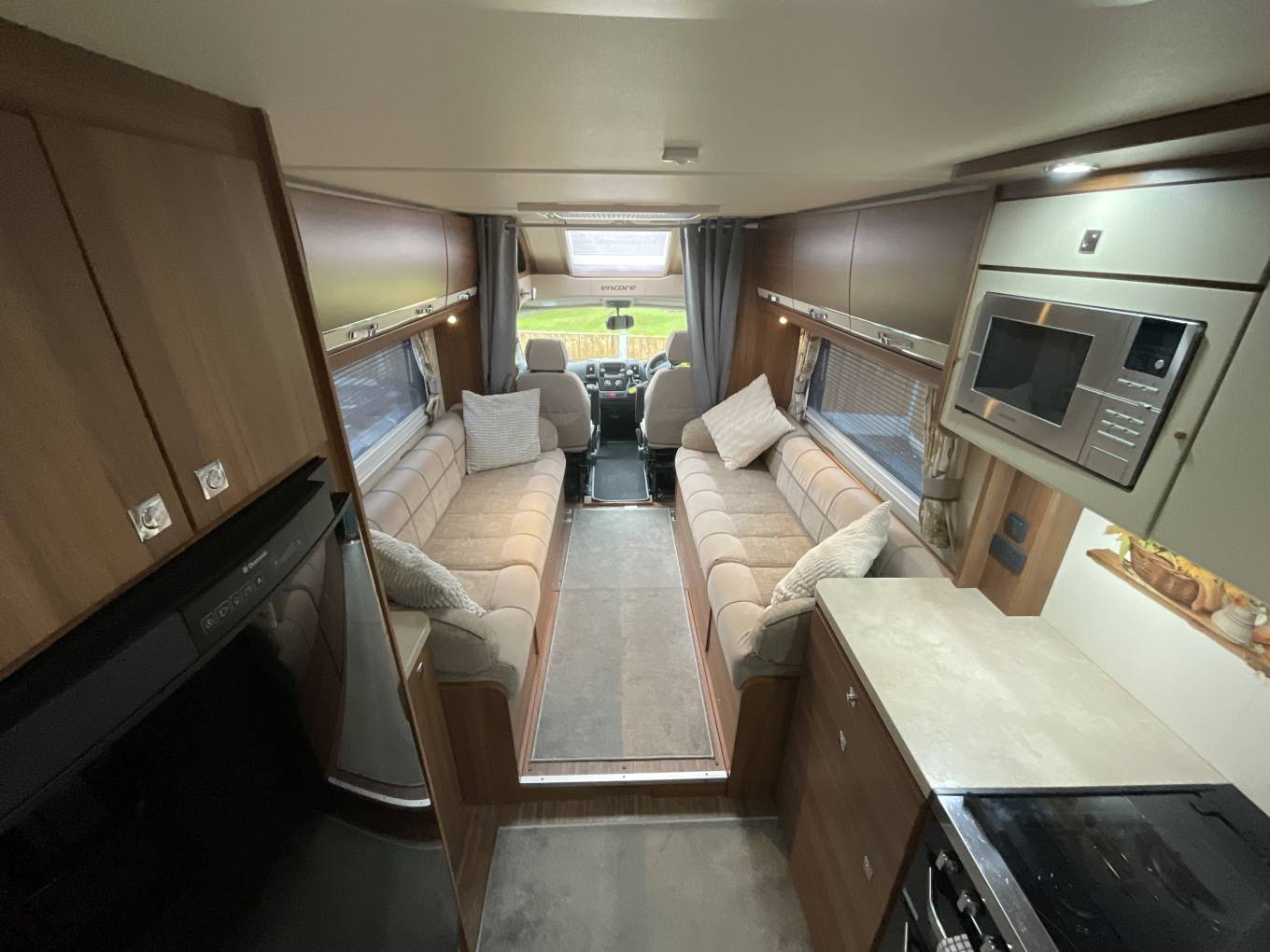 To the rear, the motorhome benefits from a private washroom with a separate shower, offering the convenience and comfort of home wherever you go. The Elddis Encore 275 is also fitted with Alde wet central heating, ensuring warmth and comfort in all seasons and making it suitable for year-round touring.
