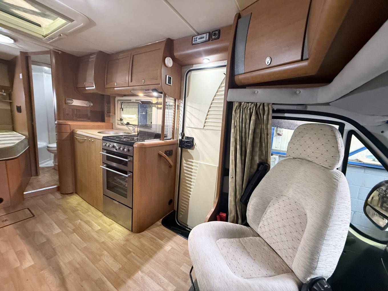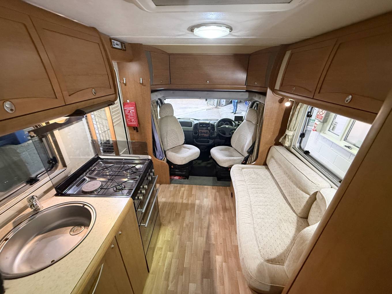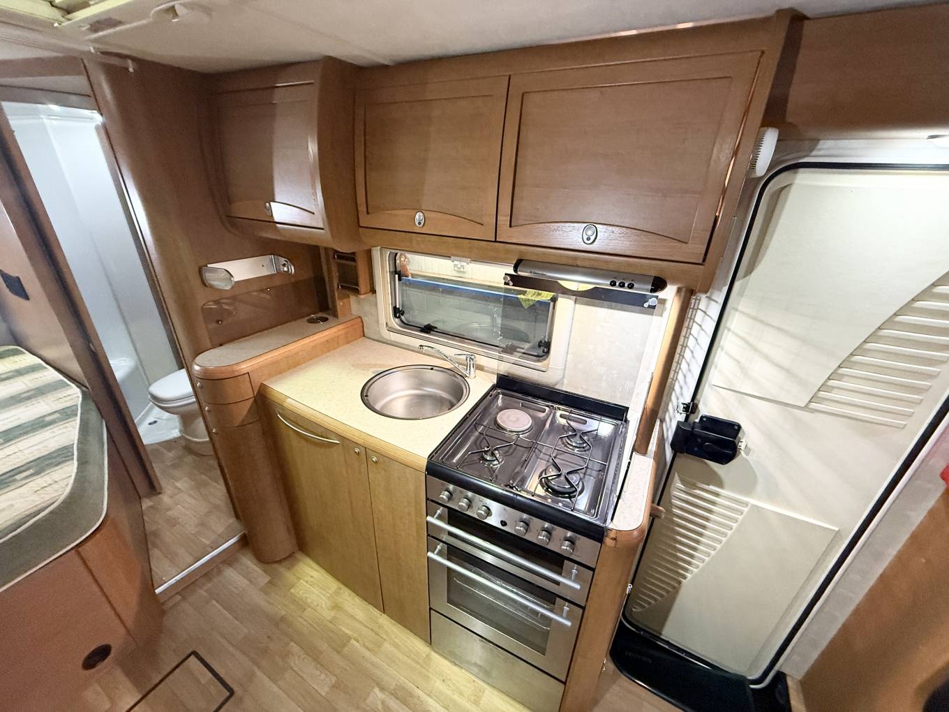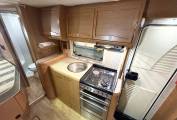 superb condition for its year gives this model the feel inside of a much larger motorhome. Food preparation can be a breeze in the well equipped kitchen area with an oven and grill, hob-burner, fridge and of course, sink and tap, with plenty of low and high level storage.