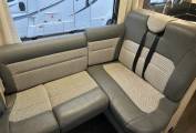 The flexible interior layout features a drop-down electric double bed and a convertible dining area that easily forms an additional sleeping space, allowing you to enjoy maximum living space during the day and comfortable accommodation at night. The bright lounge benefits from swivel cab seats, blinds throughout, a multifunction steering wheel, integrated sat nav, and ample storage cleverly positioned throughout the motorhome.