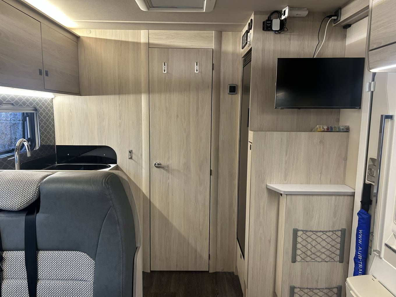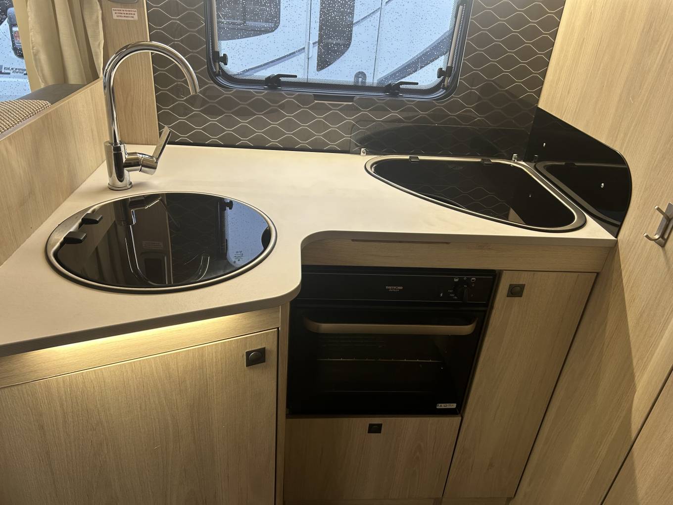 The well-appointed kitchen includes a Thetford Duplex oven and grill and Thetford fridge/freezer while the rear washroom offers excellent onboard convenience with a Thetford toilet, wash basin, and Whale water system. Year-round comfort is assured with heating, cab air conditioning, and thoughtful details such as USB points and WiFi system to keep you connected wherever you travel.