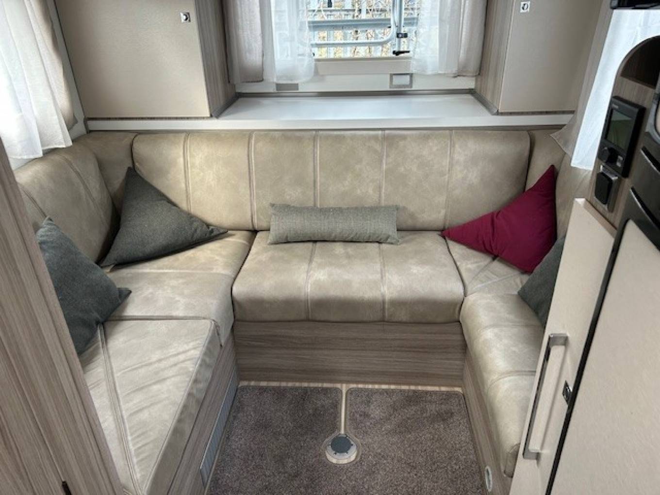 Comfort is assured all year round thanks to the Truma iNet heating system, cab air conditioning, and thoughtful touches such as USB points, fly screens, and blinds throughout. Additional features include a tracker provided by Trackstar, swivel cab seats, radio with Bluetooth, Wi-fi system TV in the lounge, TV aerial, and a reversing camera for confident driving. For extended touring, this Mileo benefits from a solar panel, refillable gas bottle, awning, bike rack, and generous storage throughout.