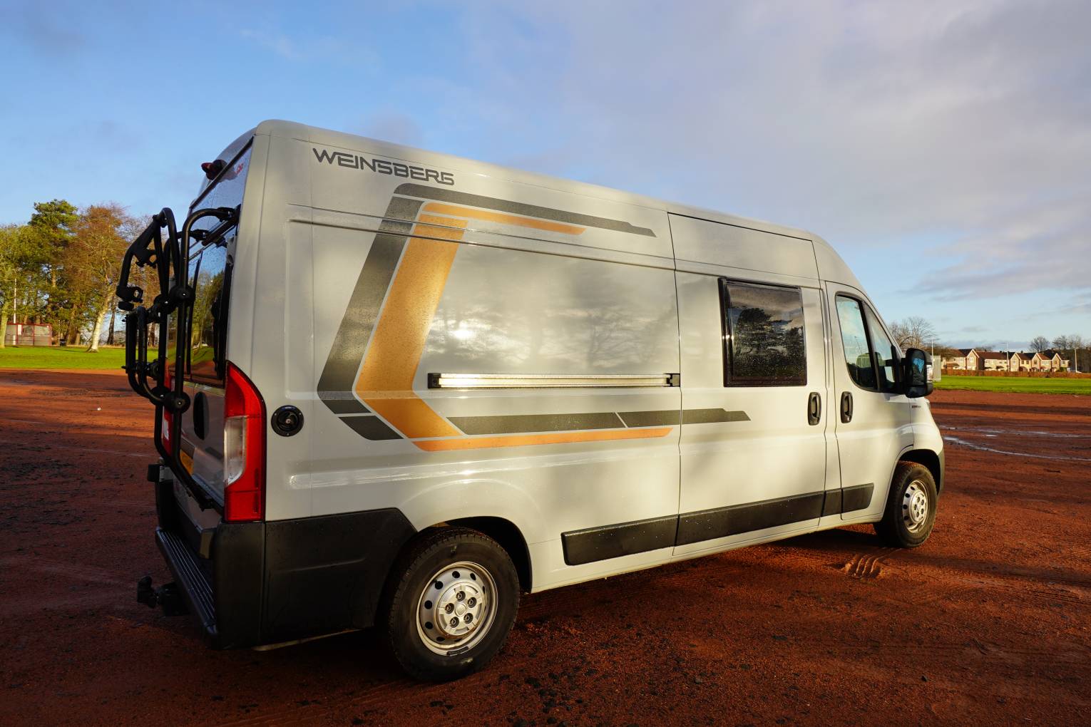 For sale we have a 2021 Weinsberg Carabus 600, 4-berth, 4-seatbelts with end-double bunk beds.