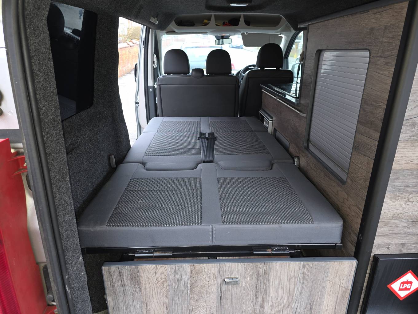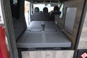 The rear seats, with the addition of the electric folding bed mechanism, convert easily into a sleeping area for 2.