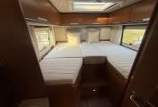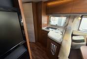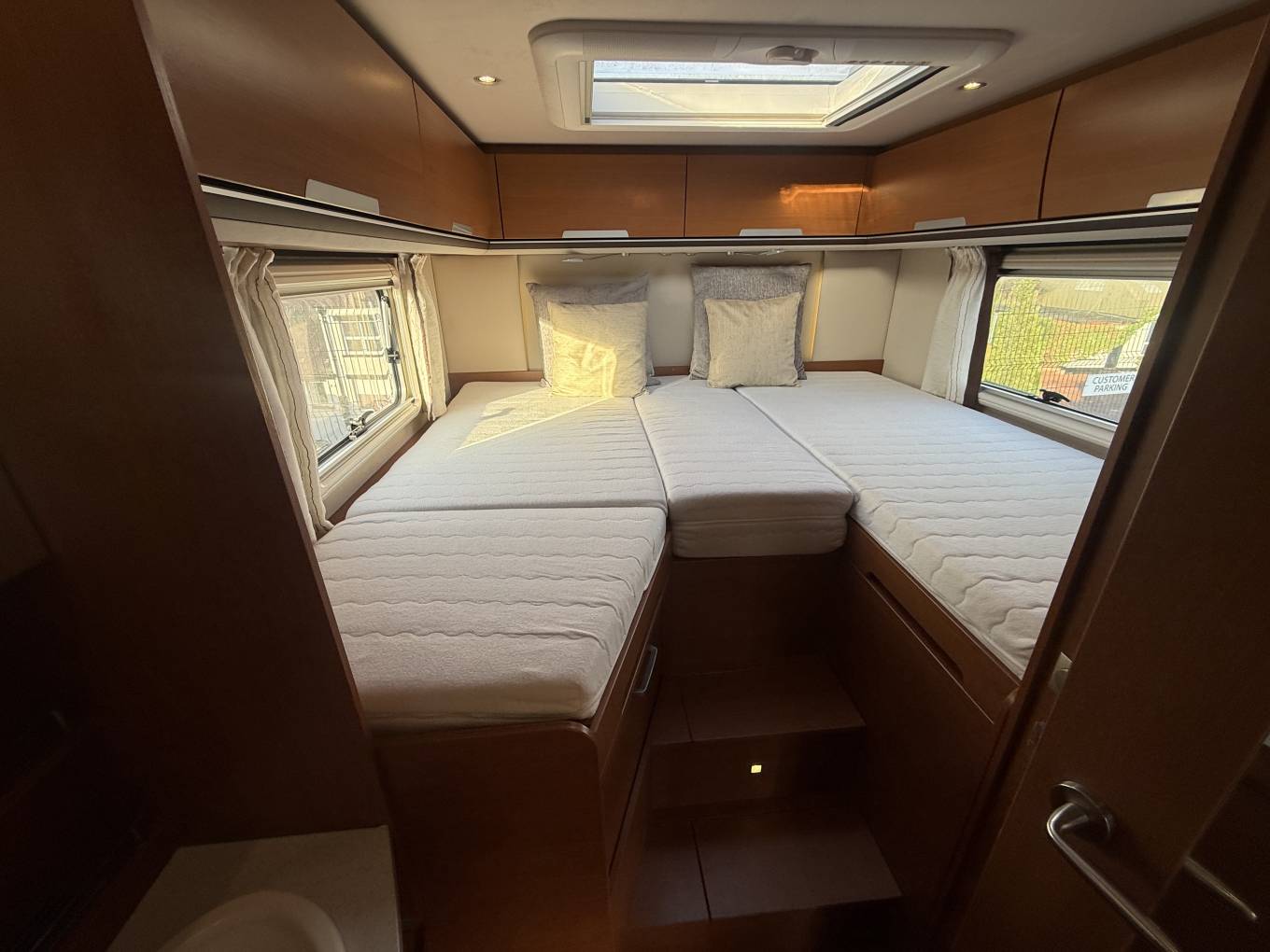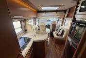 There is comfortable sleeping for up to 4 adults separated by privacy doors. The contemporary split washroom area has a full size shower cubicle on one side, with the toilet ingeniously stored and pulls out on one side of the motorhome, and washbasin, mirror, medicine cabinet and vanity unit on the other. At the rear of the motorhome is a large double bed or it can be 2 single beds with plenty of storage including wardrobes and over head cabinets. It has the added luxury of an added skylight, not fitted as standard, allowing for extra natural light. This is complemented with a large drop down bed at the front which pulls down to not effect the dining/lounge area underneath of the motorhome. It easily sleeps 4 without having to continually be making up beds and It has the added benefit of the preferred Alde heating system.