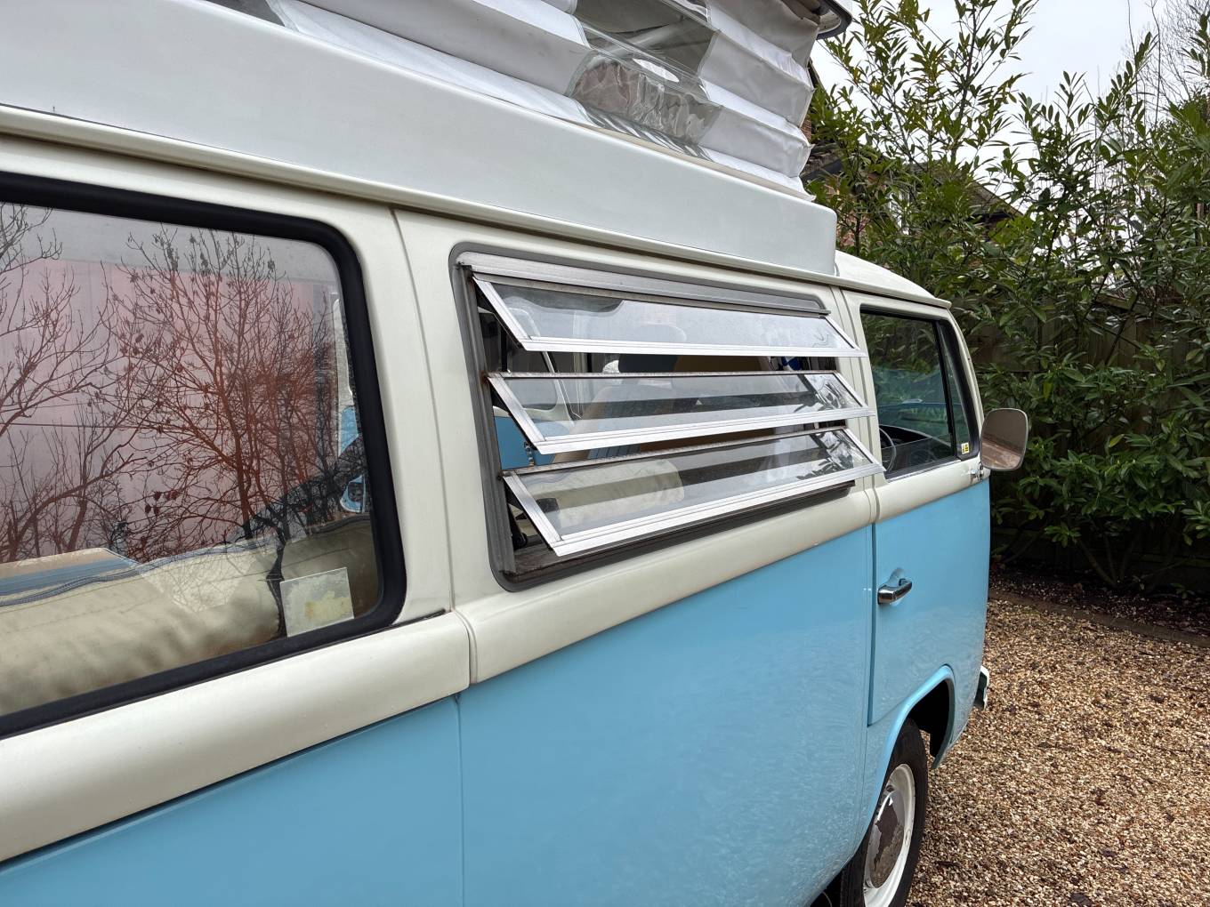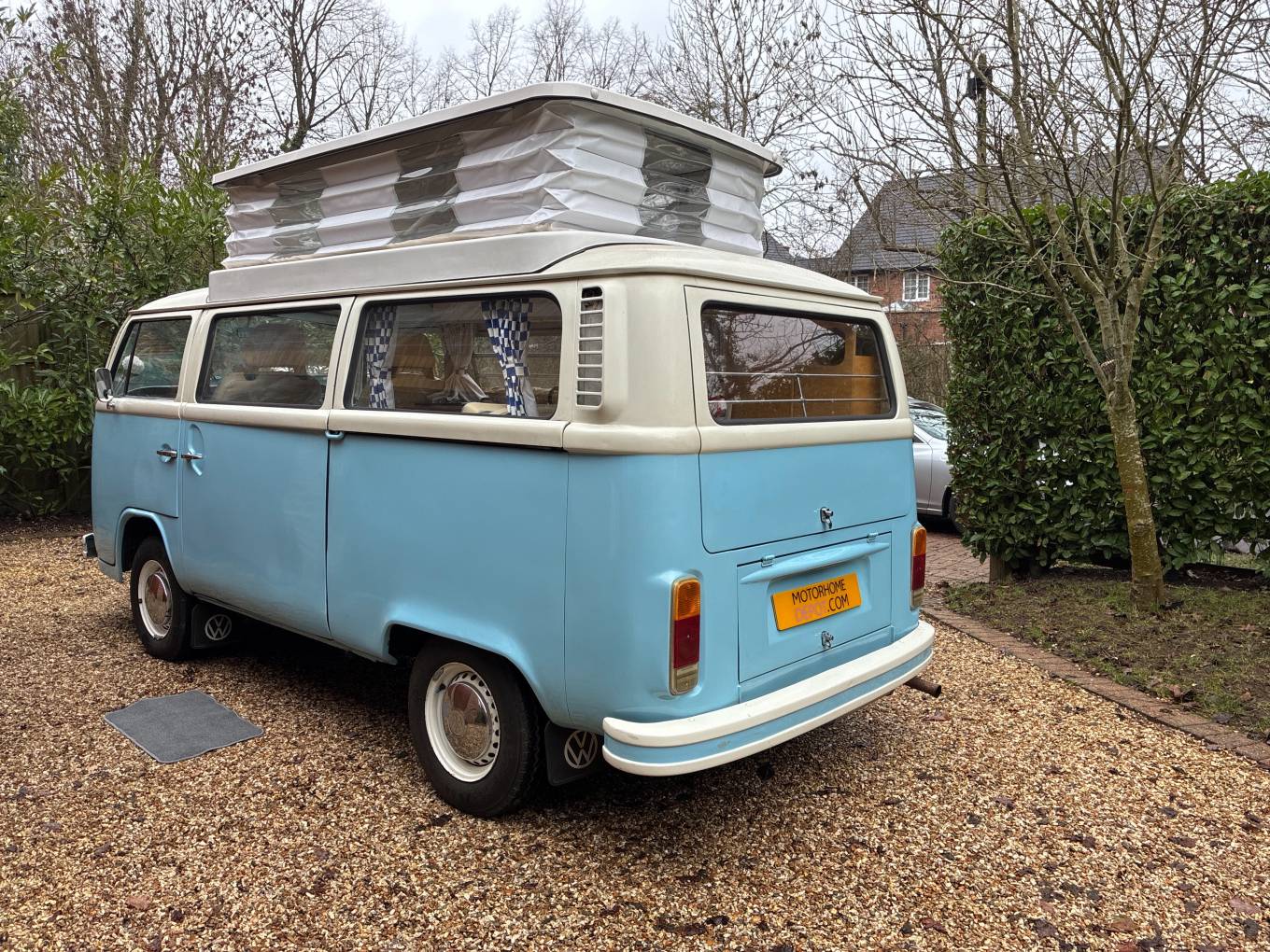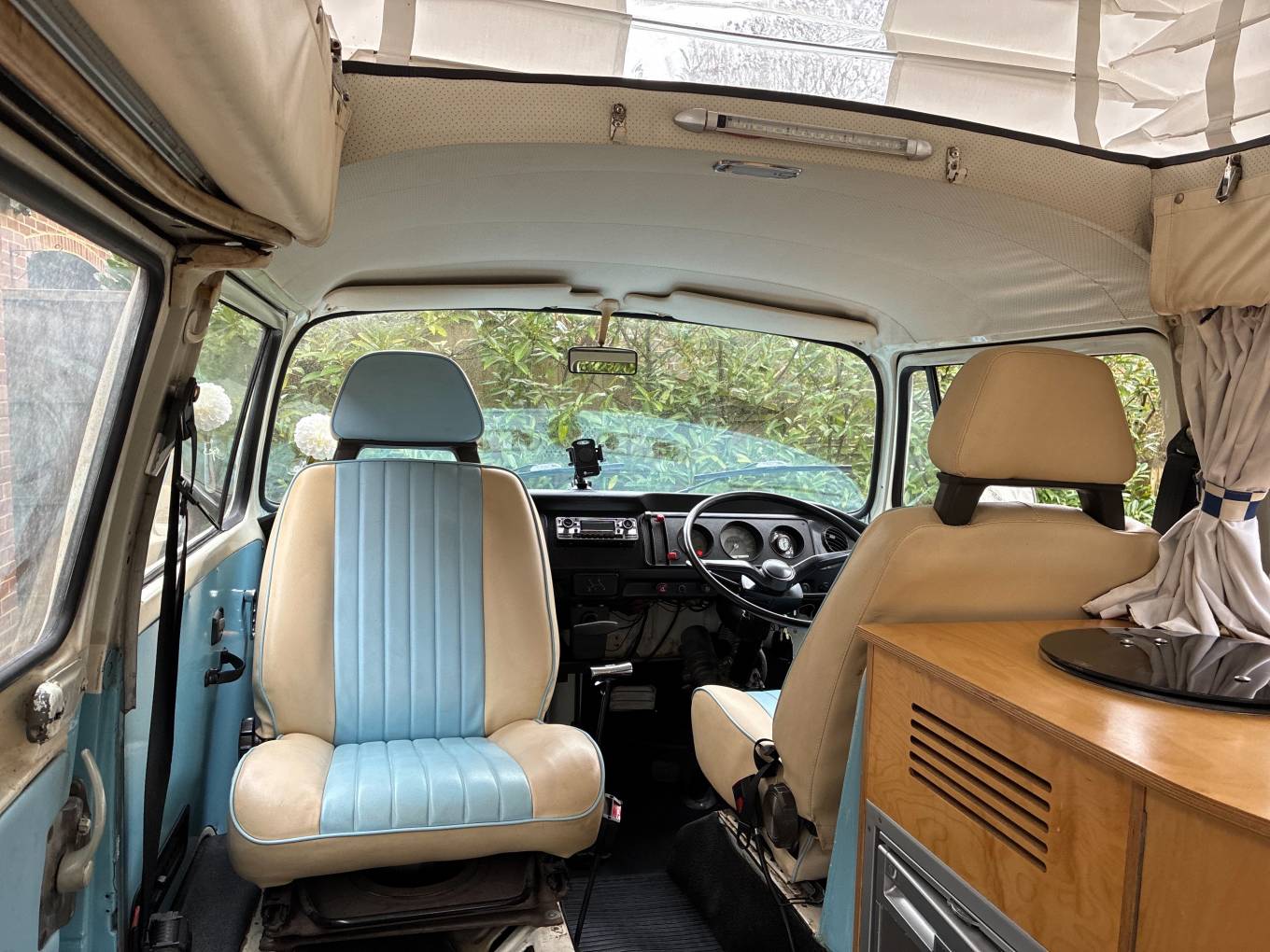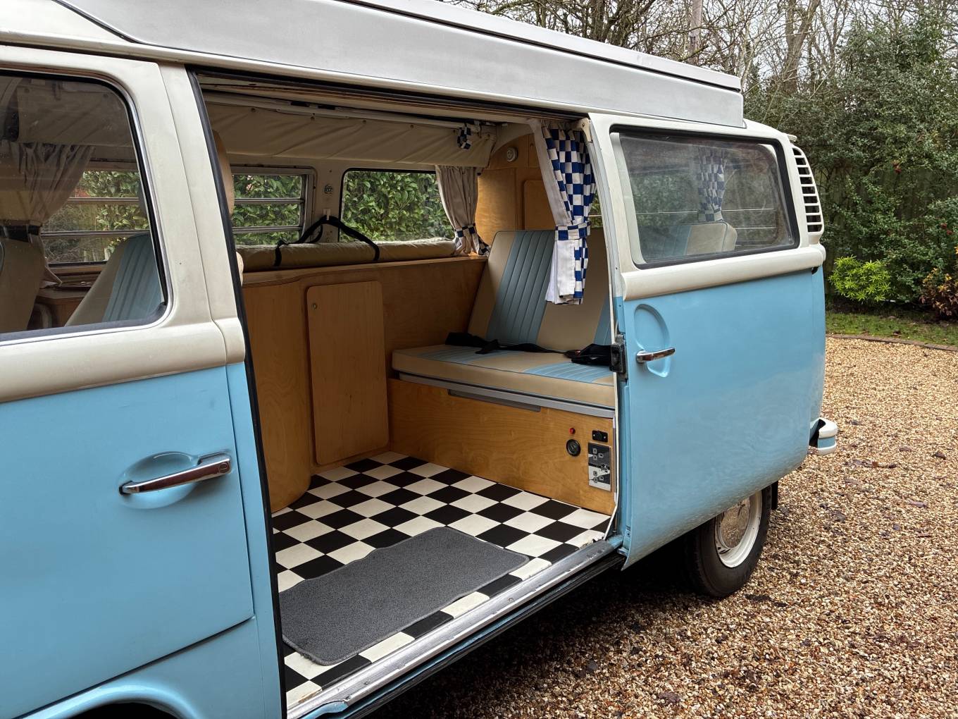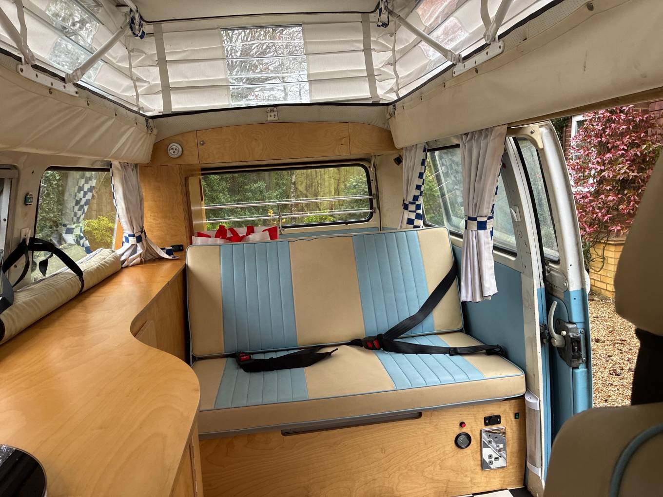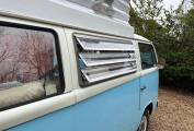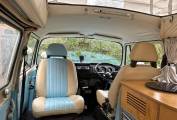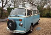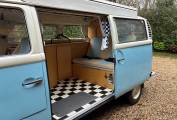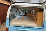 New engine and power steering fitted in 2015/90,800miles - approx 8,000 miles driven on new engine - Light blue paintwork with coordinating pale blue & cream upholstery - Passenger swivel seat - Fold over single gas hob fed from Camping Gaz bottle (included) - water container for pumped cold water to sink - 240v sockets - 12v sockets - LED lighting - mains electric lead - leisure battery - Rock & Roll bed (6ft 3in x 3ft 11in) - 2 x roll out suspended hammocks (6ft 5in long) - side window curtains - cab window cover - Pop-Top roof fitted 2021 - front roof rack included (not fitted) - Outhaus awning also included - camper has been stored/garaged by current & previous owner - no expense spared with regards to servicing and general care of campervan - lots of organised paperwork to prove including original handbook - a few minor age related marks to be expected of a vehicle of this age - FANTASTIC EXAMPLE OF VW T2 BAY WINDOW 50+ YEARS OLD!!