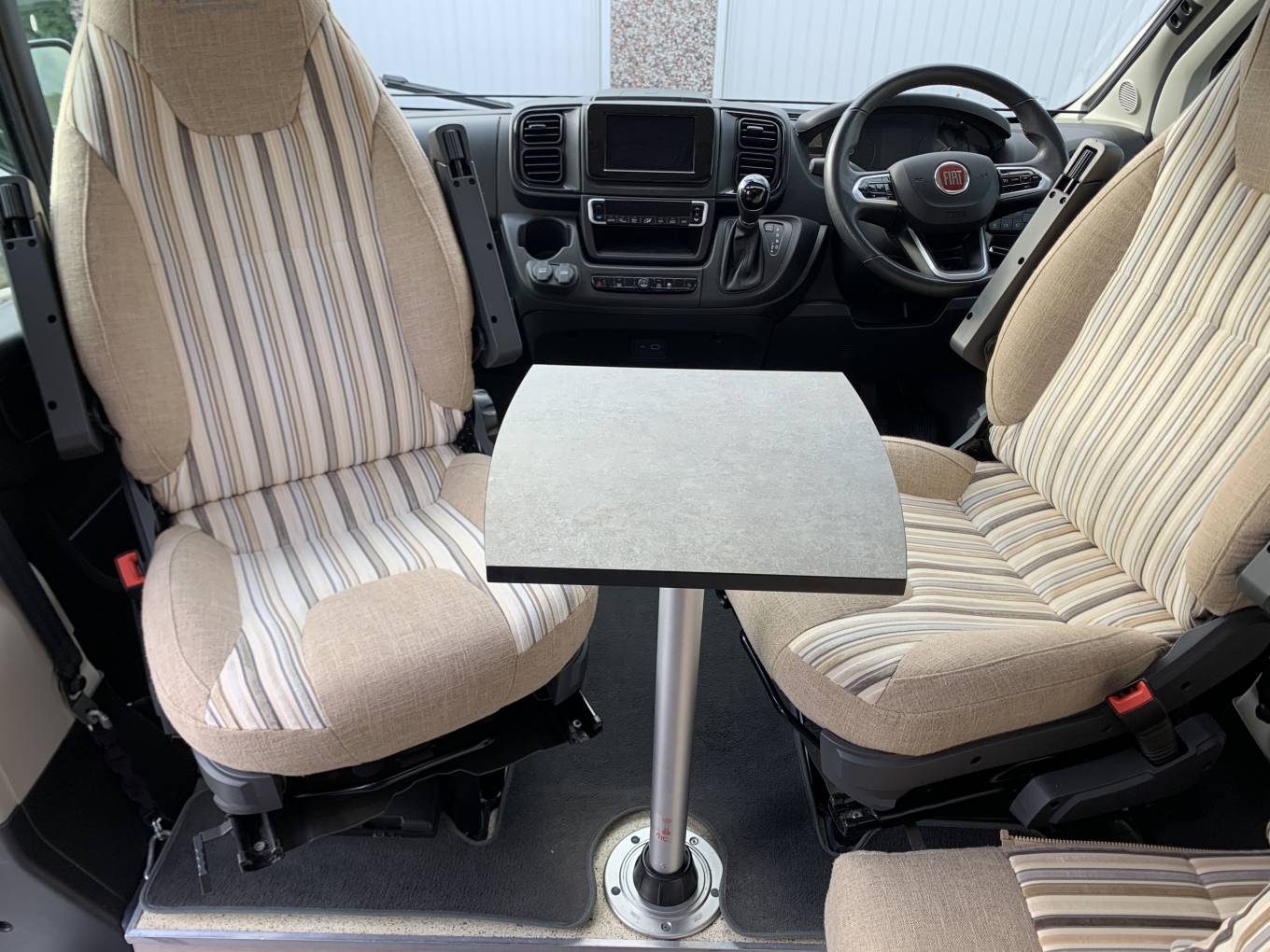 Built on a Fiat Ducato with the latest 9 speed fully Automatic gearbox, the cab comes with Air-con, Cruise Control, Blue Tooth, Sat-nav, Reversing Camera and Sensors, ASR (Anti Slip Regulation) and full Remis cab blinds.