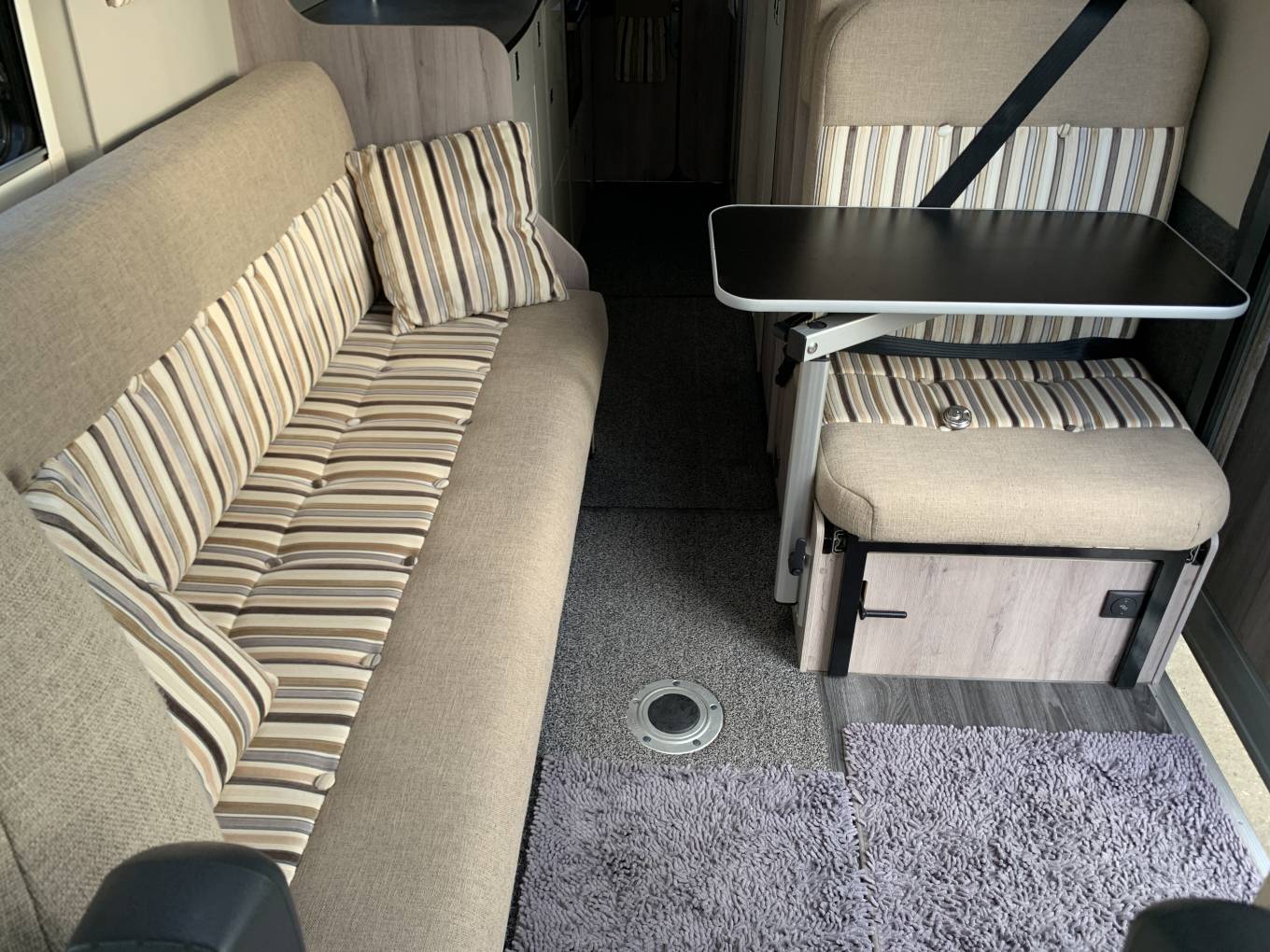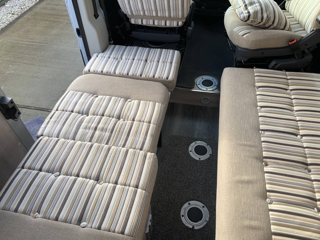 Layout offers 3 belted seats and 2 berths via 2 x 6 foot 4 singles or a massive double, assembled in seconds with a very clever and practical design.