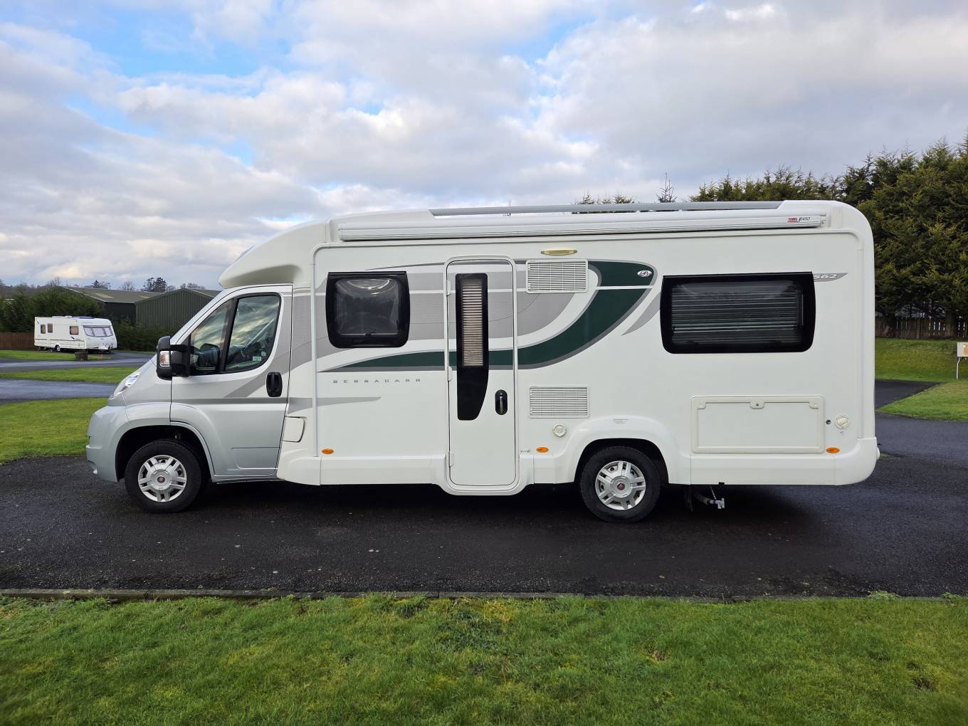 Externally there are storage lockers, a fitted towbar with electrics and full length awning.