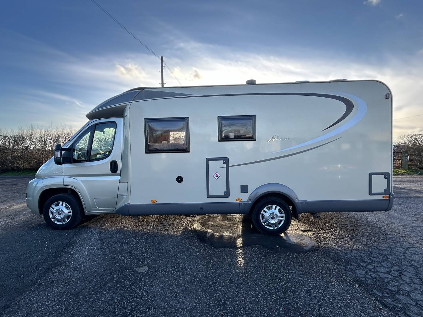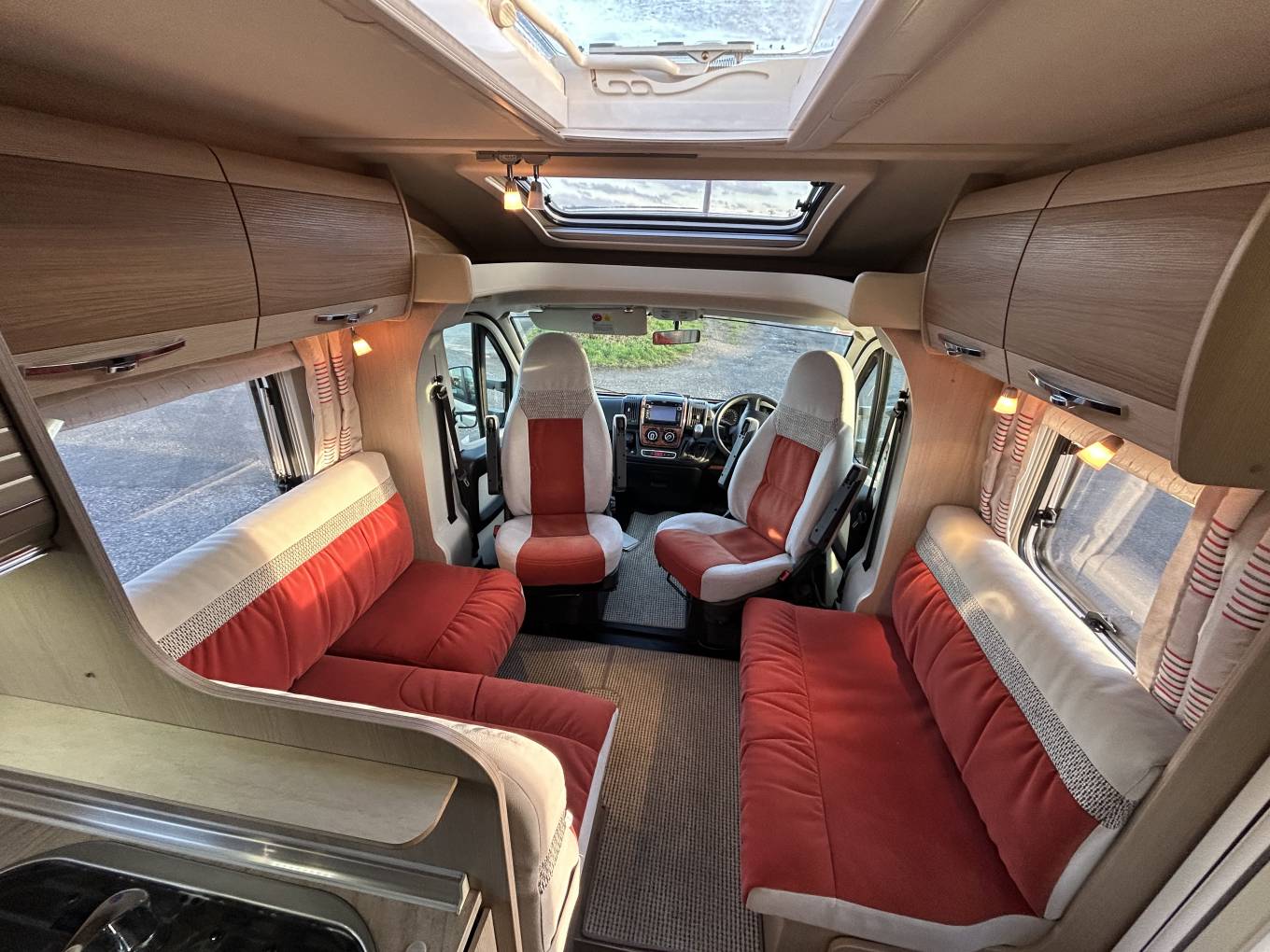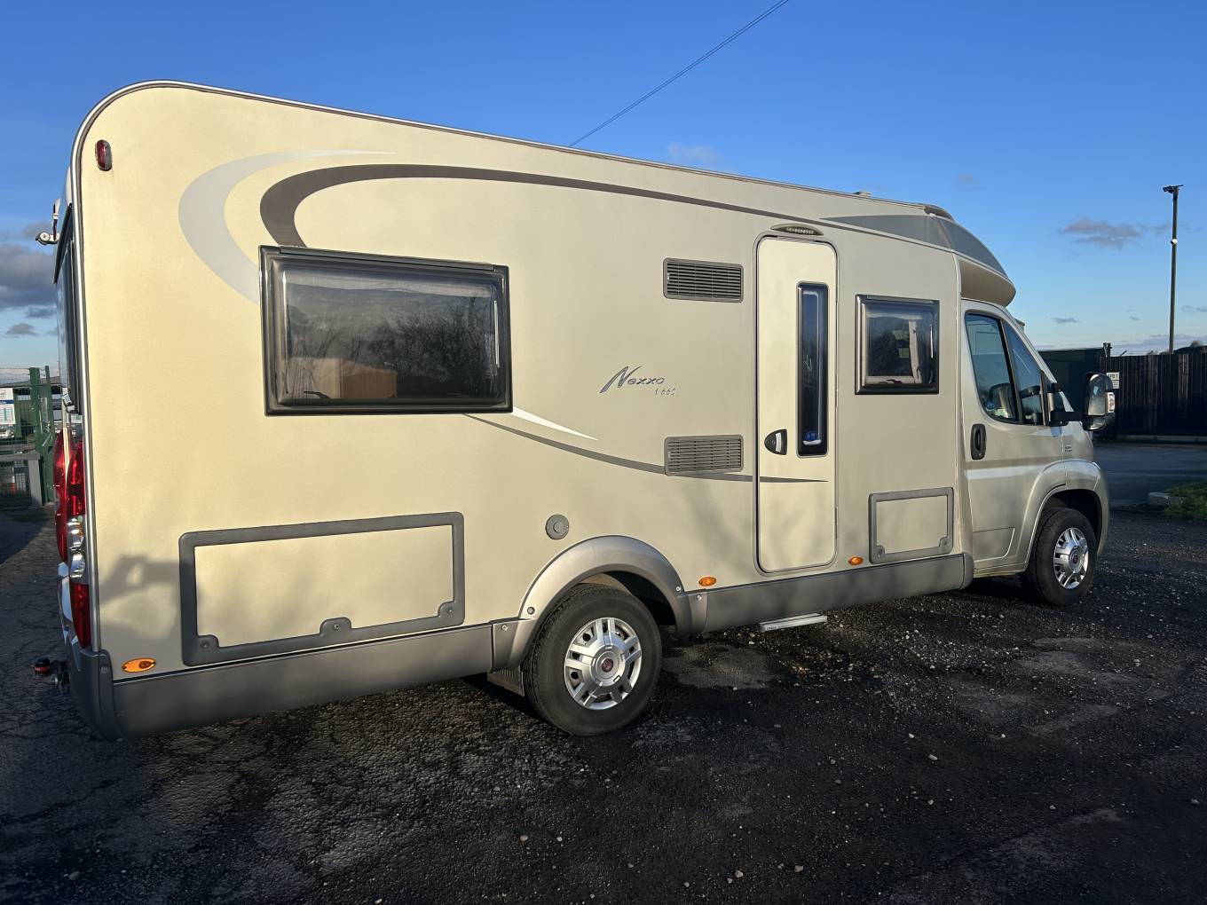 Here we have a Burstner Nexxo T660, Fiat 2.3 Automatic, 4 berth with 2 seat belts. 52000 miles. This motorhome is comfortable and a joy to drive, with cruise control, air conditioning, reverse camera and the 6 speed Automatic gears. The screens and side windows all have fitted blinds for your convenience, Both seats turn to the central dining area giving you plenty of seating area. There is an adjustable table with telescopic base loose. there is plenty of storage beneath the seats and in the all units. The kitchen area has plenty of space, sink/mixer tap, cooker top, fridge freezer and cooker with a grill. The wash room has a separate shower and cassette toilet, large mirror and sink with mixer tap. The bedroom has plenty of storage below and in the wall units. The Truma heating system will keep you comfortable no matter the weather, the solar panel will keep your battery topped up whilst you are on your travels. It has a tow bar and access to external storage. It comes with 12 month warranty and full service history.