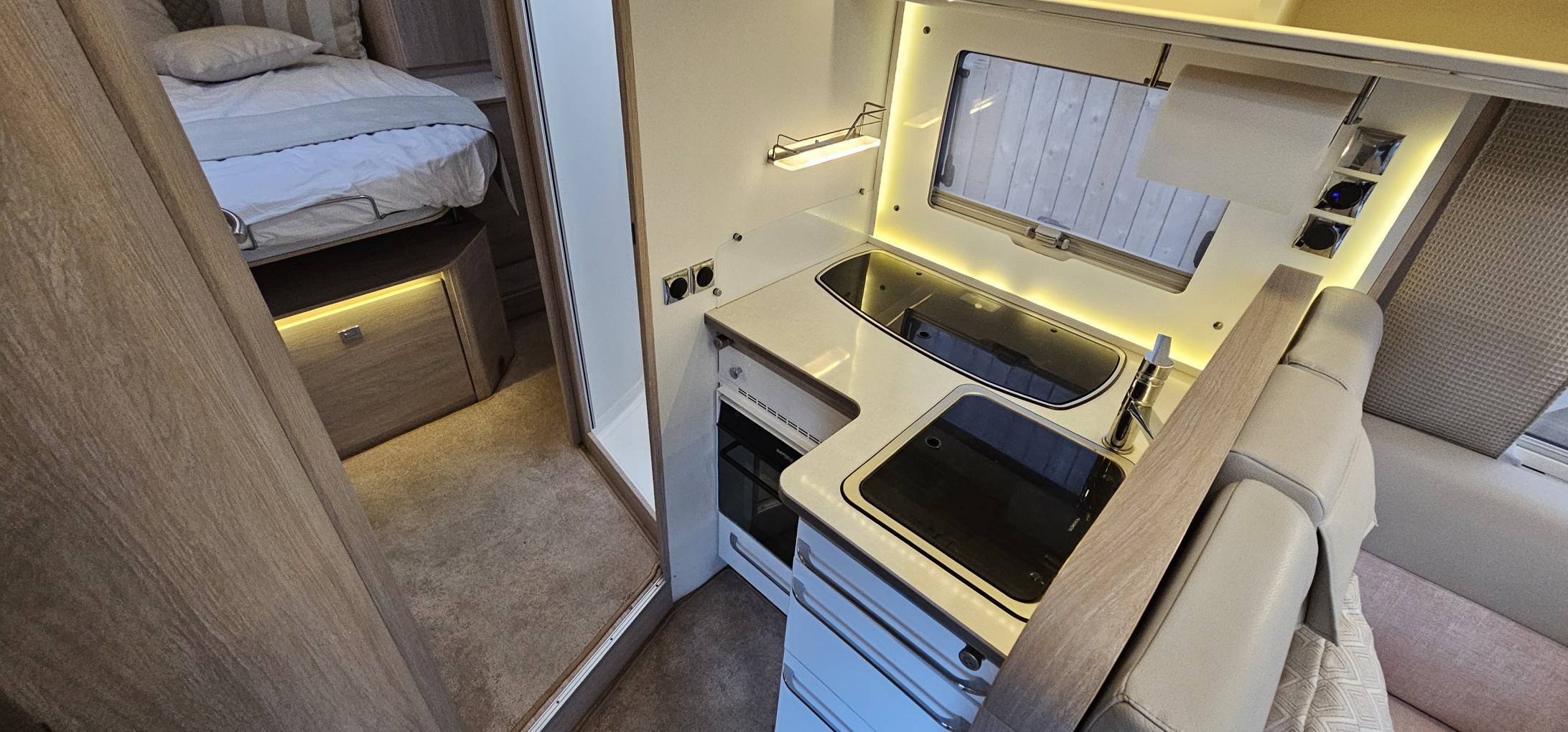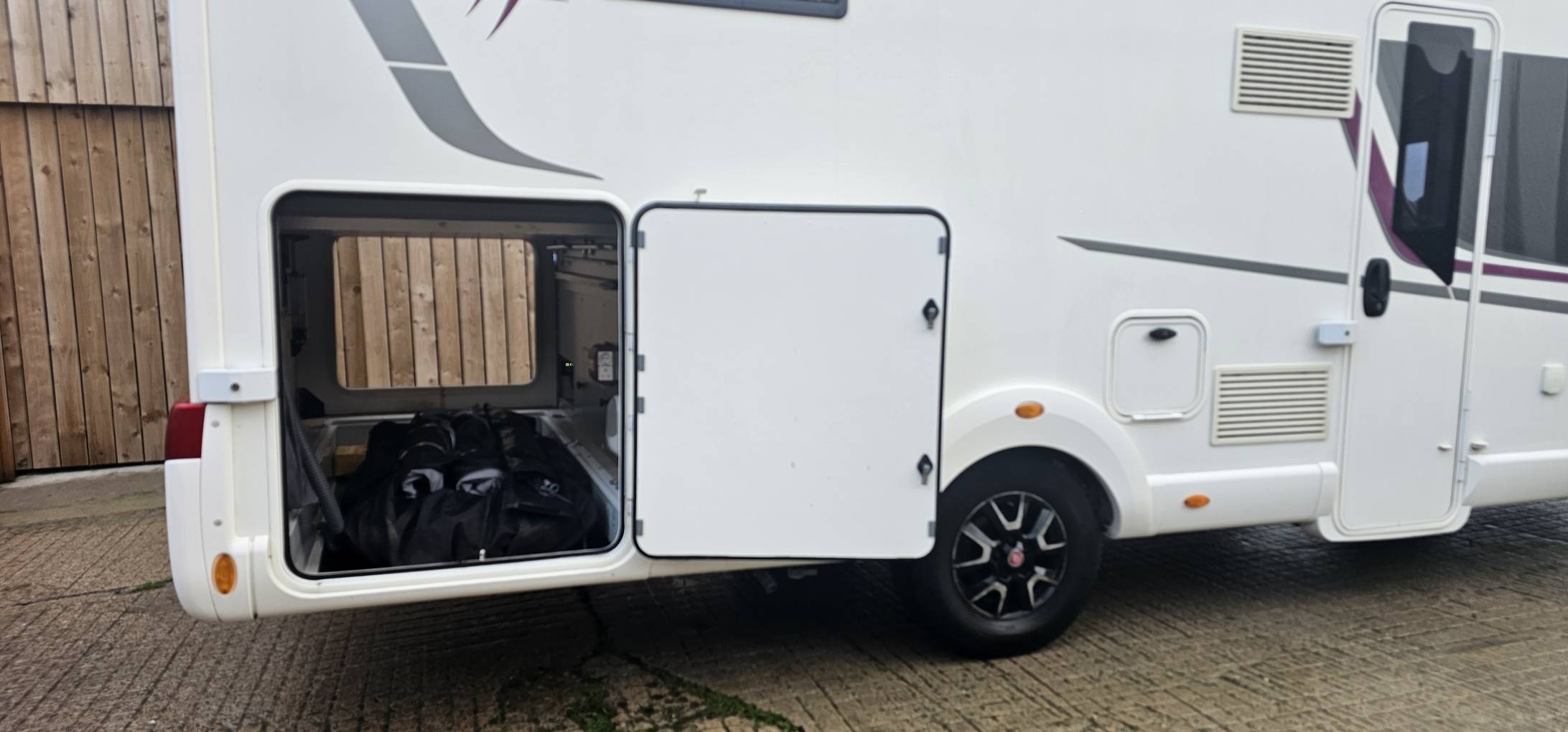 Externally, there is a rear heated garage underneath the double bed and depending on what you are storing in the garage there is the facility to raise the bed providing more space. There is also a 350w inverter with UK and european plugs.