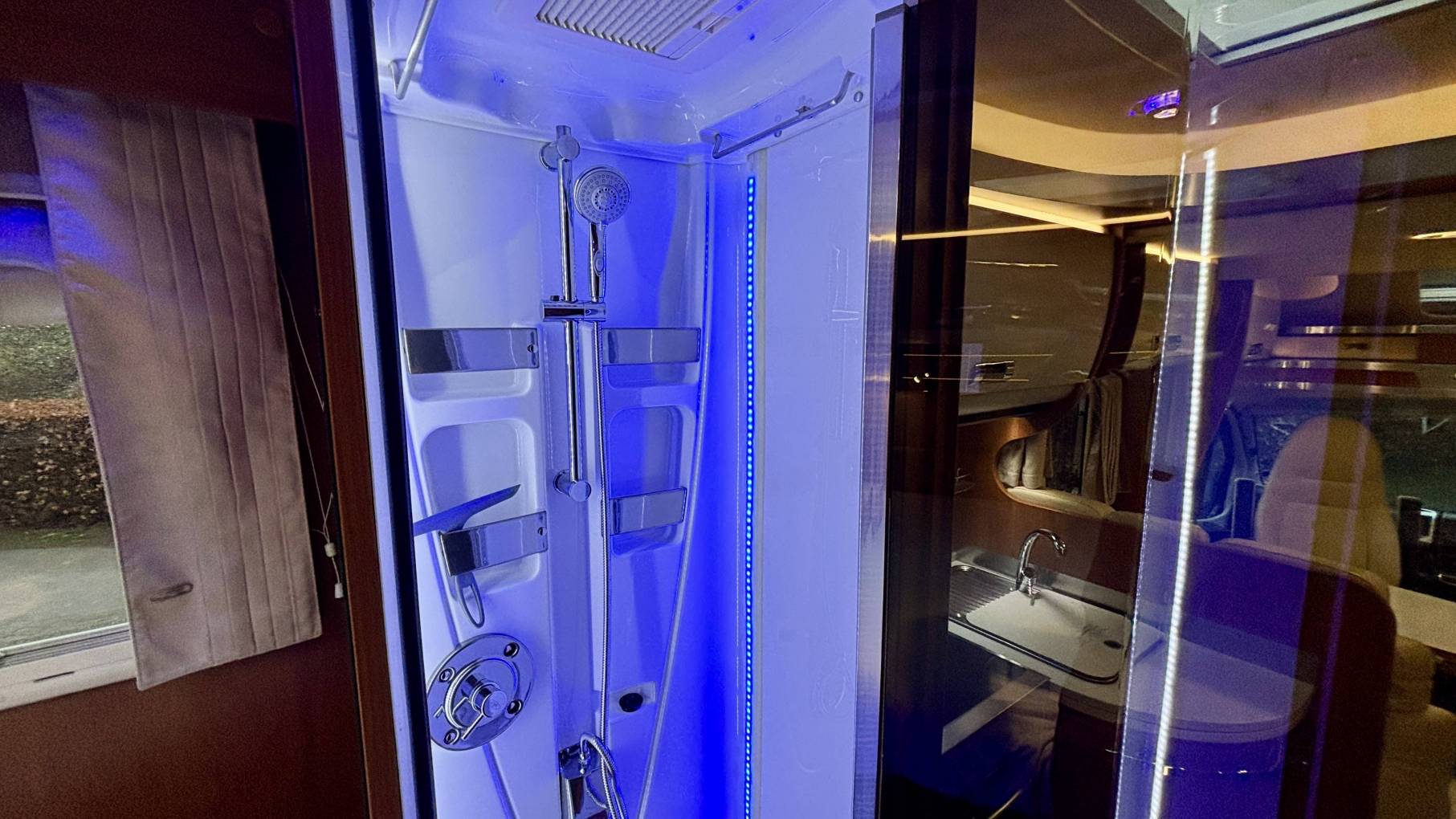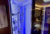The washroom layout reflects the quality expected from Laika, with a separate shower, cassette toilet and washbasin, all finished to a high standard.