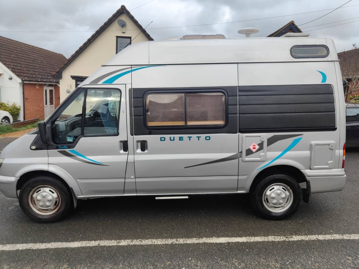 This is a great example of the really desirable Autosleeper Duetto built on the Ford Transit cab with a 2.4 turbodiesel engine. This 2 berth camper has either 2 singles or a large double plus a very well equipped kitchen and shower. Finished in Silver paintwork and only 57k miles from new with great history. Based in Kent and more pictures available.