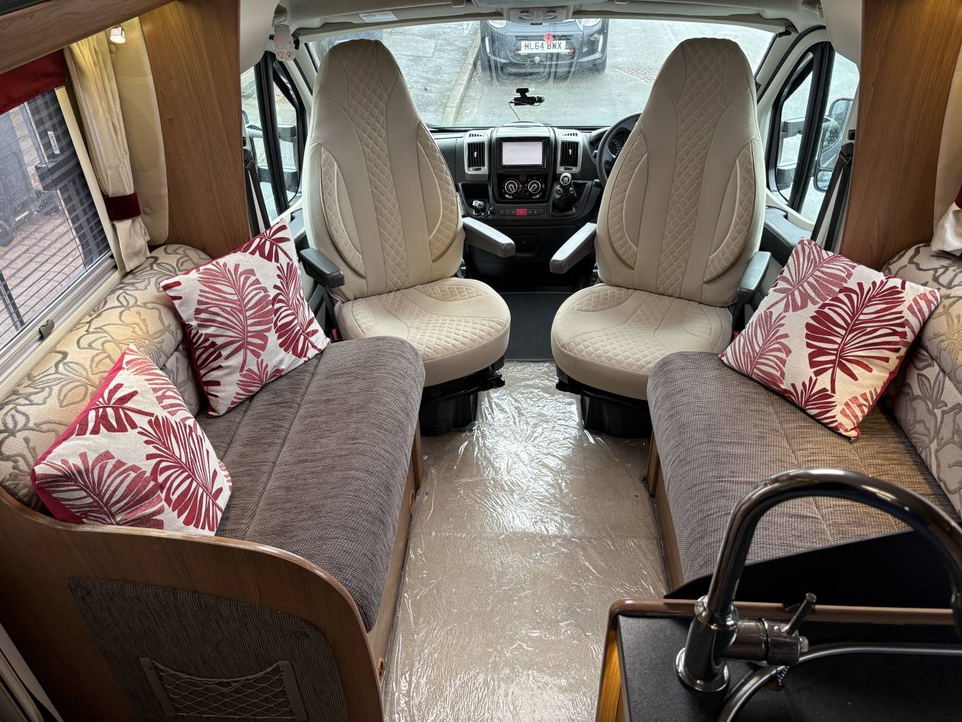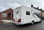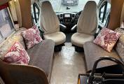This Motorhome is based on a Fiat Ducato chassis and is powered by a 2.3 litre diesel engine developing 150bhp coupled to a six speed Manual Gearbox. The Cab benefits from Power steering, Air con, electric windows, windscreen blinds, 2 Captain Chairs, Media unit and cupholders.