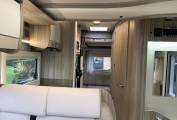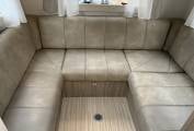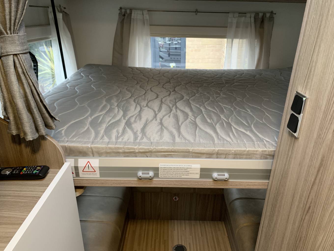 A Low-profile with two lounges, two drop-down double beds and panoramic triple aspect rear lounge, ideal for families, its essentially two motorhomes in one, a rear lounge with drop down double for mum and dad, with the kids own drop down double and seating area at the front.