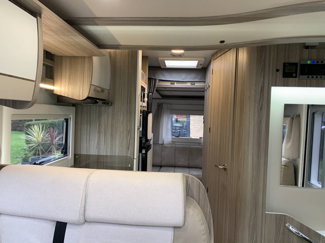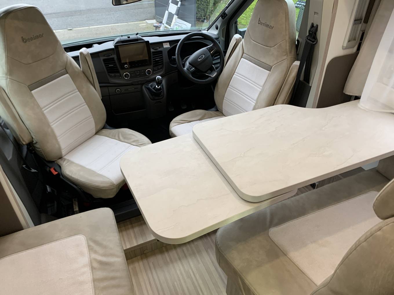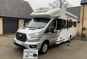 Built on a Ford Transit with 6 speed manual gearbox and a powerful 170 bhp engine, it comes equipped with Air-con, 9in touchscreen “infotainment” system DAB radio, Bluetooth connectivity, sat nav, reversing camera, Remis blinds and swivel seats.