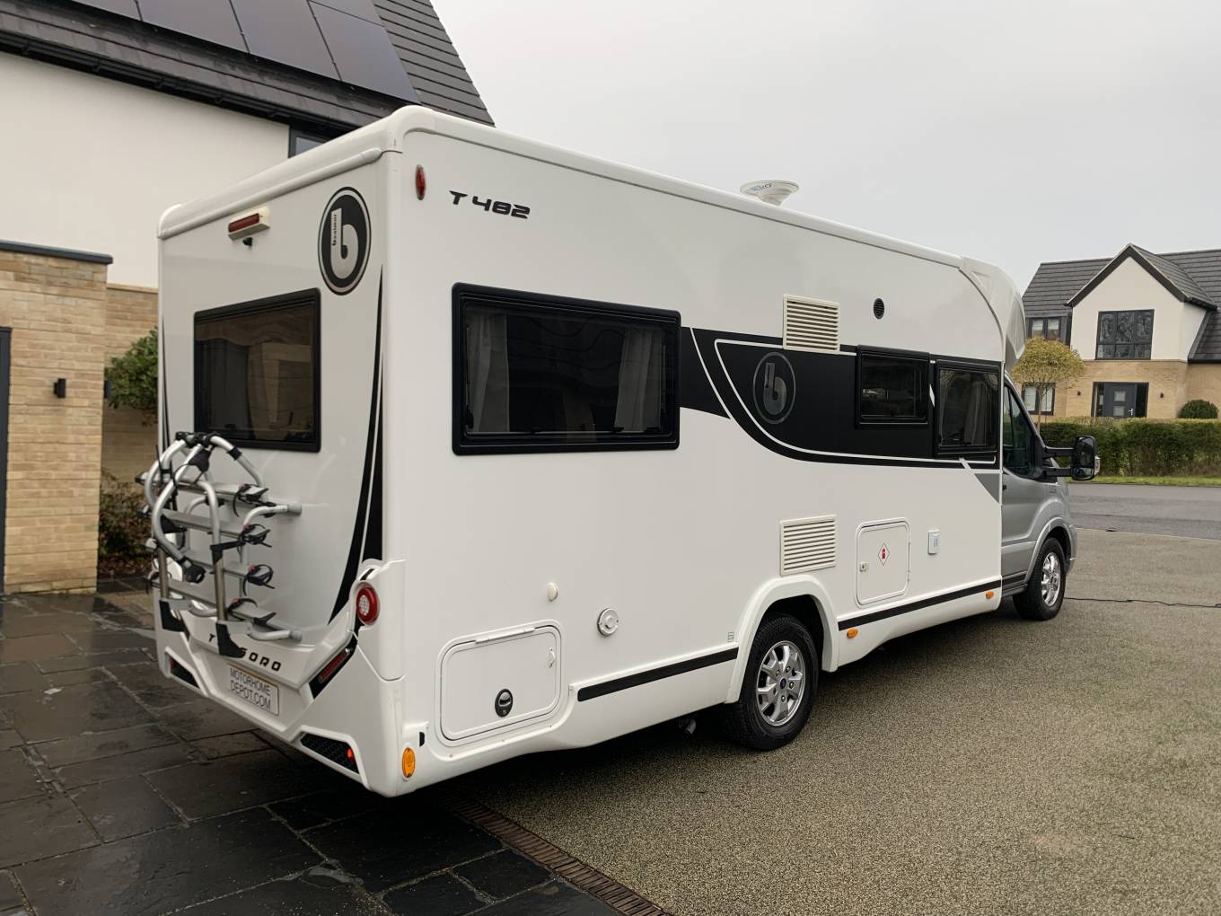 The motorhome has been fitted with awind out sun canopy, 4 rail bike rack, immobiliser and a Trackstar tracker.