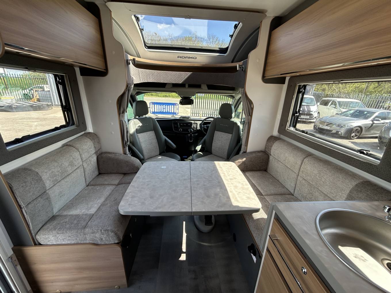 The well-thought-out layout features a luxurious rear island bed, complemented by a centre dinette that converts into an additional double bed and also forms two forward-facing travel seats. The dinette benefits from an electric drop-down table, making bed conversion quick and effortless, while the kitchen includes a fold-down side extension to maximise workspace. Swivel cab seats further enhance the open and sociable feel of the interior, along with a TV bracket for optional installation.