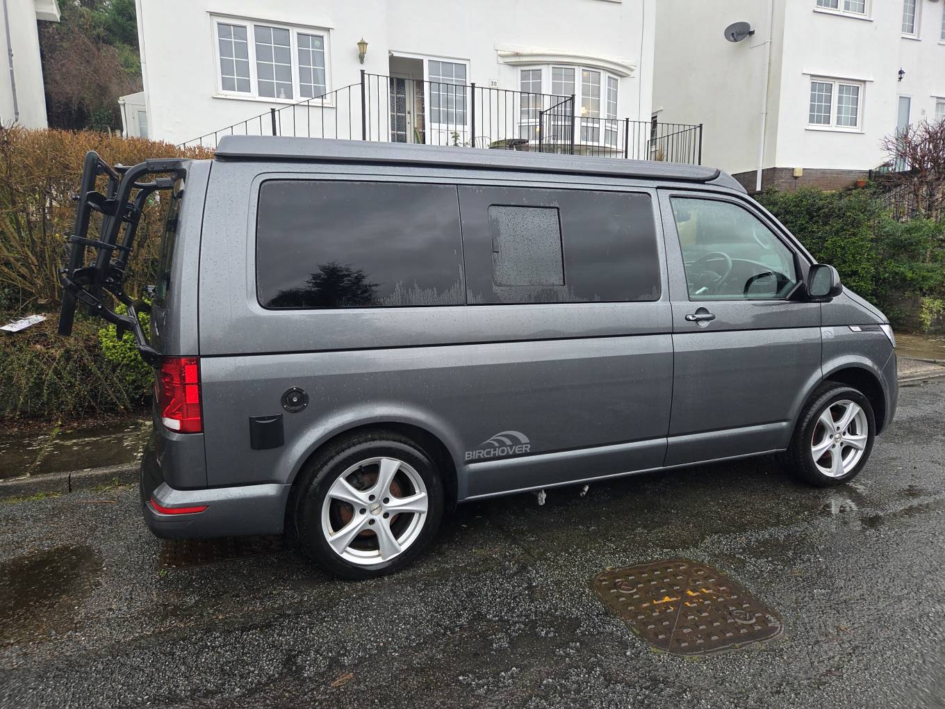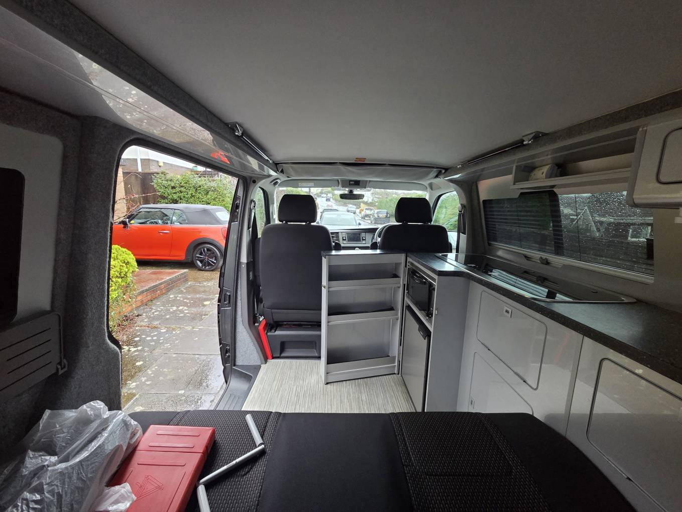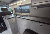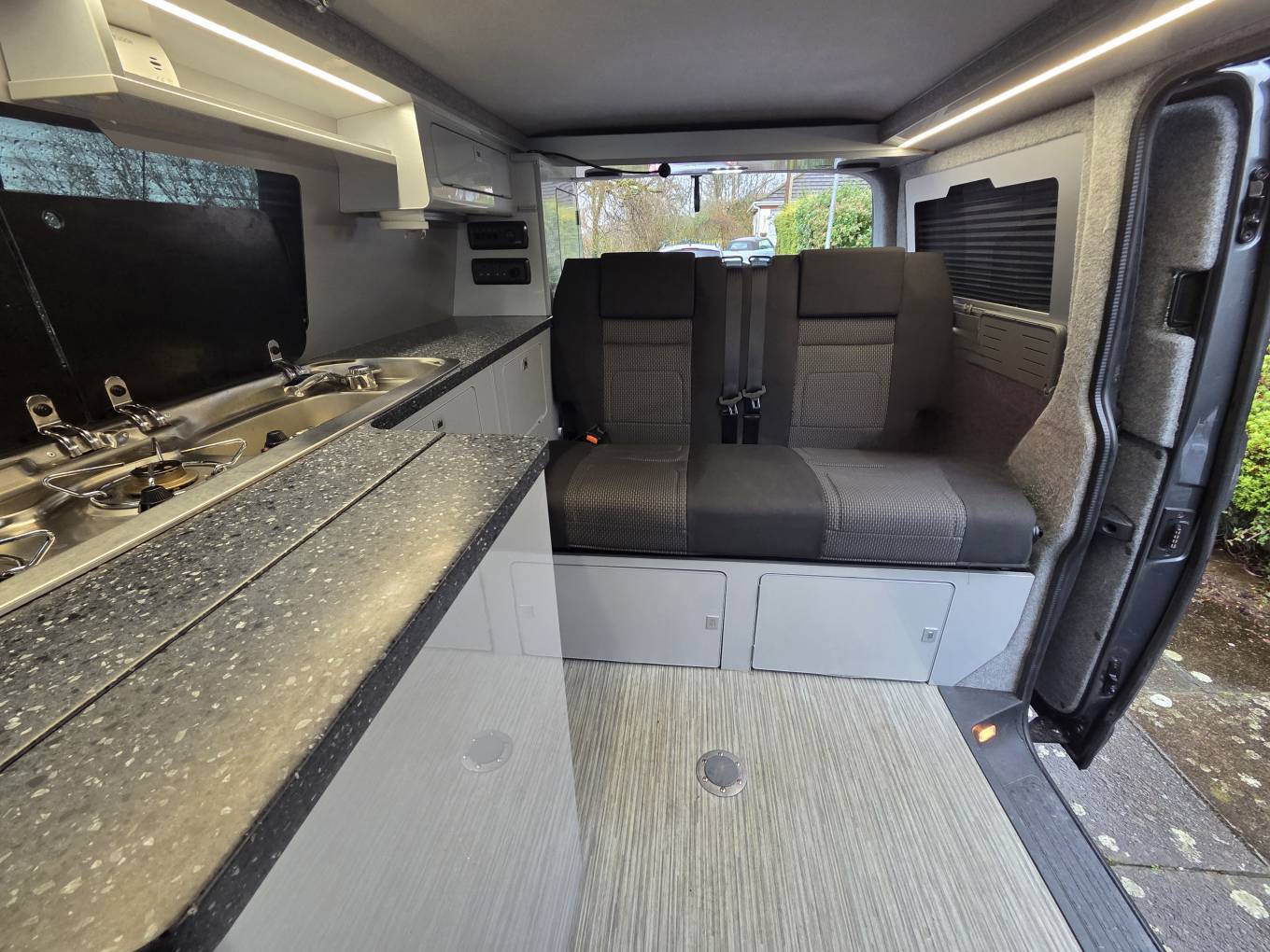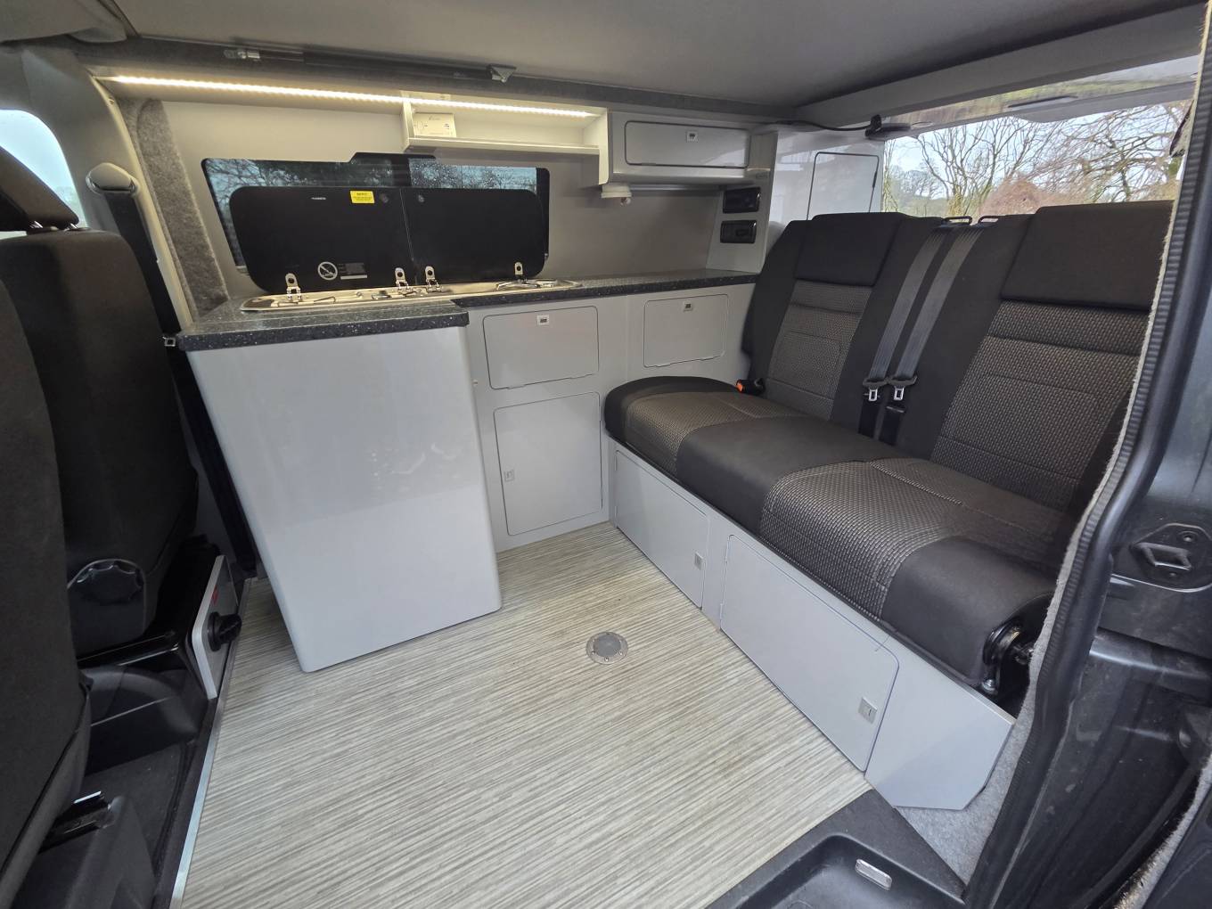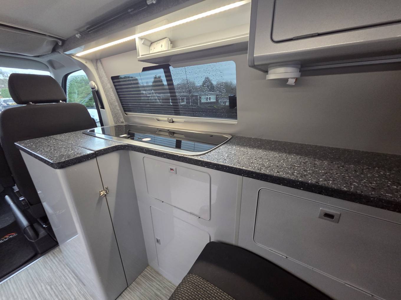 Established in 2004, Hillside Leisure is a premier UK-based manufacturer and converter specializing in high-quality Volkswagen campervans.In this time they have established a reputation for excellent workmanship and are considered to be one of the best conversions available on the market today. This is evident when looking at this particular van and it can be seen that the quality is as high as can be found.Also,this particular van is based on the Highline model,so it has a high spec. The Hillside Birchover is renowned for excellent driving performance and high safety standards. It features a traditional side kitchen layout and an elevating roof, designed to be a versatile daily driver as well as a comfortable leisure vehicle.The Birchover boasts a spacious and flexible living area. The swivel front seats and rear bench seat create a cozy seating arrangement, perfect for relaxing or dining. The high-quality upholstery and finishes give the interior a modern and stylish look.