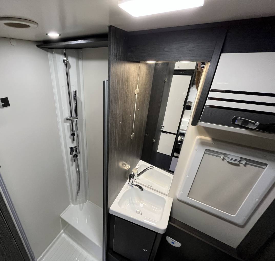 • Washroom with wc, vanity basin, separated full shower cubicle and storage cupboards |