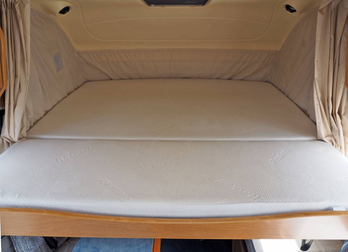 The cab area is a pleasure to be in, having uprated seats and an excellent view of the road thanks to large glass area, generous side mounted mirrors and newly fitted twin reversing camera. Cab air conditioning is present and a heat exchanger for warming the habitation area. There are fully integrated privacy blinds, adjustable sun visors and mini gloveboxes in the overcab moulding. For cab entertainment there is a radio CD and Bluetooth.