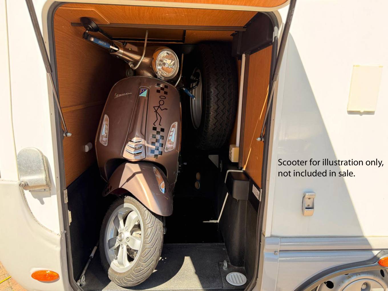 Other notable features include roll out sun canopy, 2 bike rack, twin roof mounted solar panels, twin habitation batteries, refillable gas bottles, hidden safe, Sog vented toilet system, Wifi unit, two invertors, one for domestic power and one for TV.