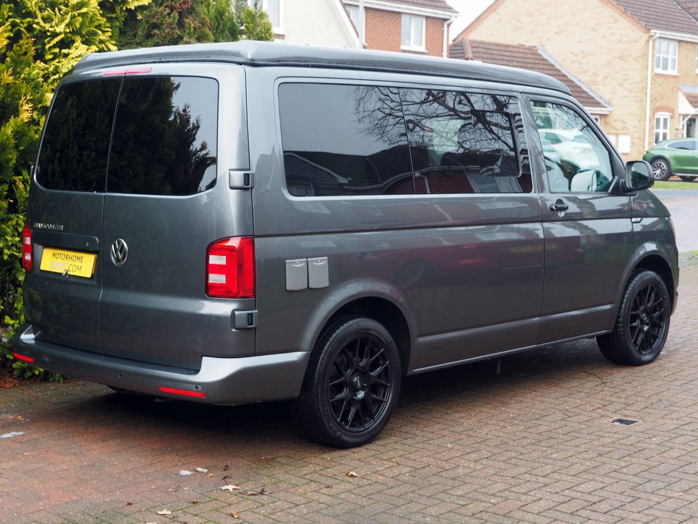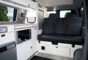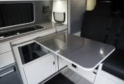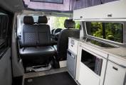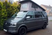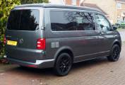 2019 VW T28 Startline 4 berth campervan, finished in grey metallic with 18 inch Team Dynamics black alloys. Converted by Southlands of Whitley Bay to a high standard, the campervan offers quality fixtures and fittings including Fabworx rear seat bed, Sargent electrics distribution including 230v and leisure battery charging, Led lighting, USB sockets, cold water system with onboard tank and sink, 12v fridge, two burner hob, microwave, Propex gas heating.