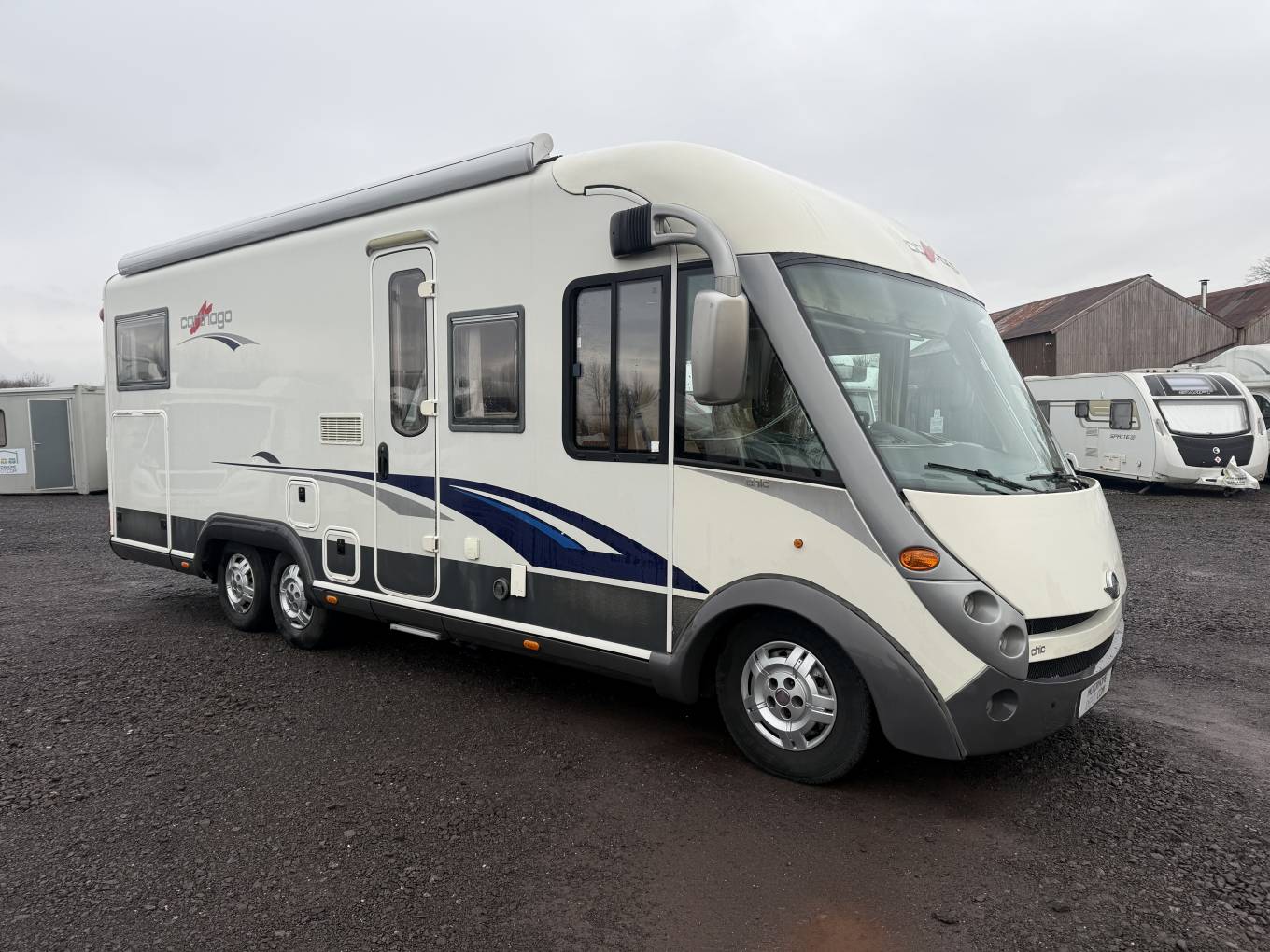 Motorhome Depot Glasgow is delighted to have for sale this Carthago Chic i51 'A' Class German built luxury motorhome with sought after fixed bed to the rear over a large scooter sized garage with a large drop down double bed over the drivers cabin.