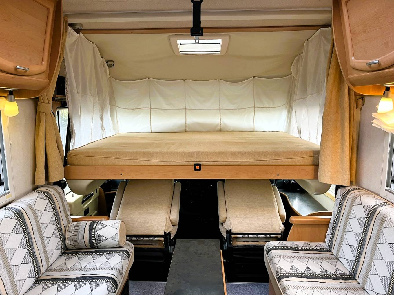 Drop down bed above the cab area is a good sized double.