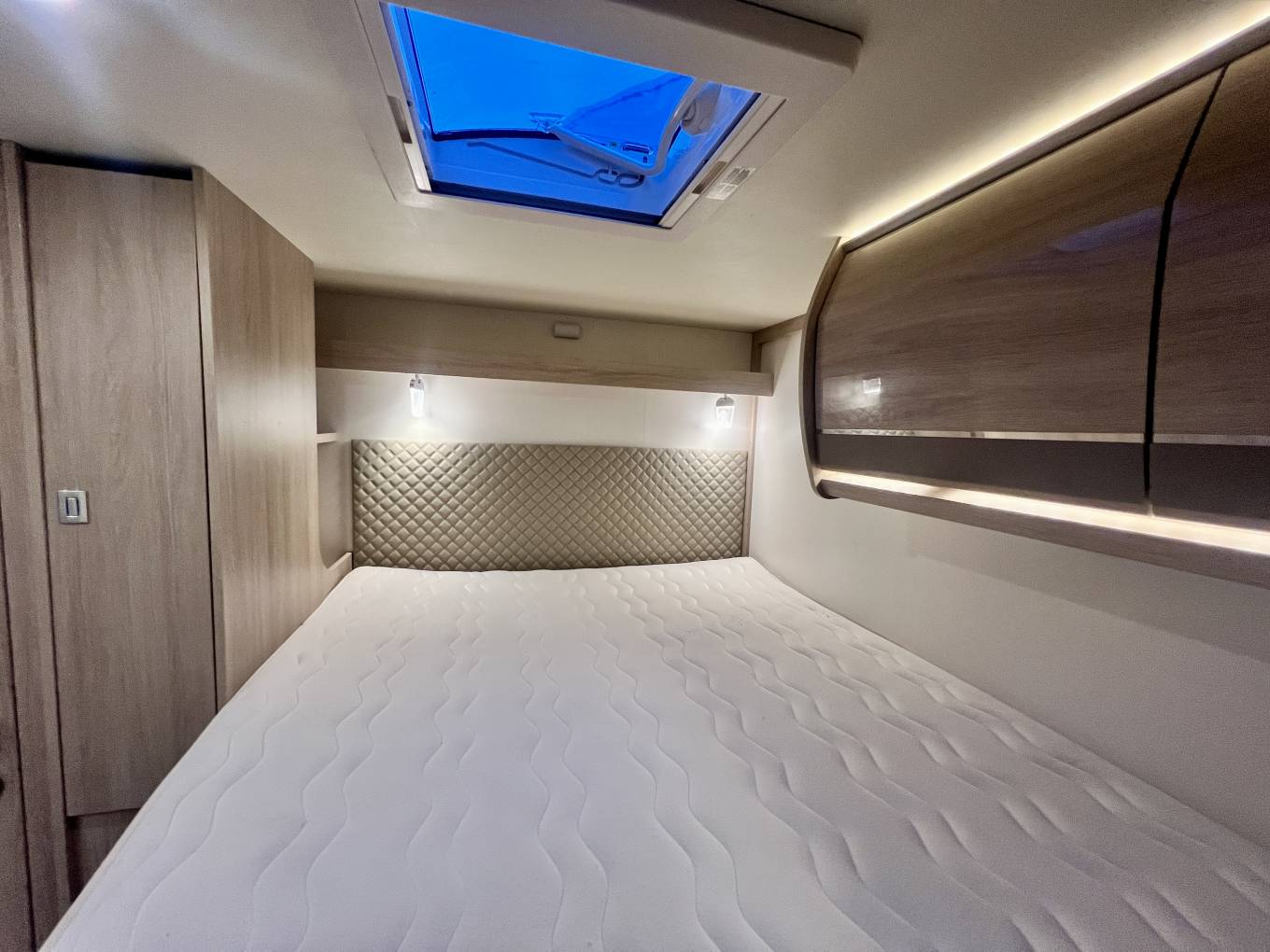 VEHICLE DIMENSIONS. Overall length 6,99 Overall width 2,35 Overall width with rear view mirrors open 2,76 Overall height 2,89 Number of seatbelts 4, Gross vehicle weight 3,5 T Chassis fiat ducato, Engine 2,3 L - 140 hp EURO 6, STORAGE AREA/GARAGE (CM) Internal dimensions (max H x max W) 116 x 99 Access right side (H x W) 110 x 87 side (H x W) 70 x 87 Type of heating Truma Combi 6, BED SIZES (MM) Rear bed 1400 x 2030, Over cab drop-down bed 1400 x 1910 Capacity of fresh water tank 140 / Capacity of waste water tank 120 / Type of refrigerator Absorption Refrigerator capacity 149 L.
